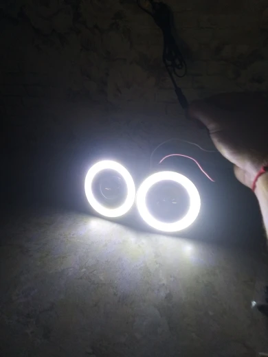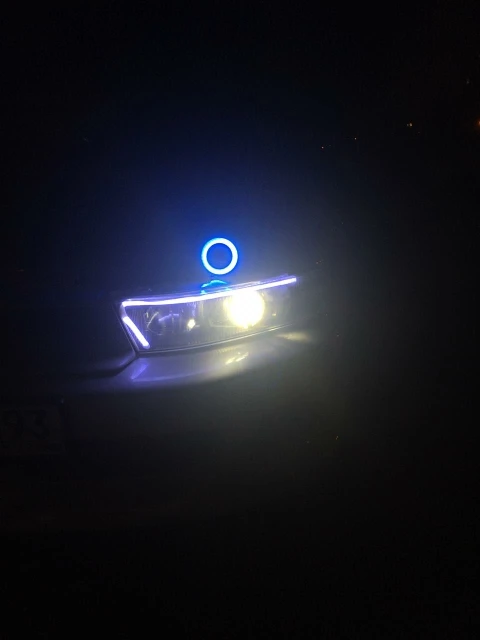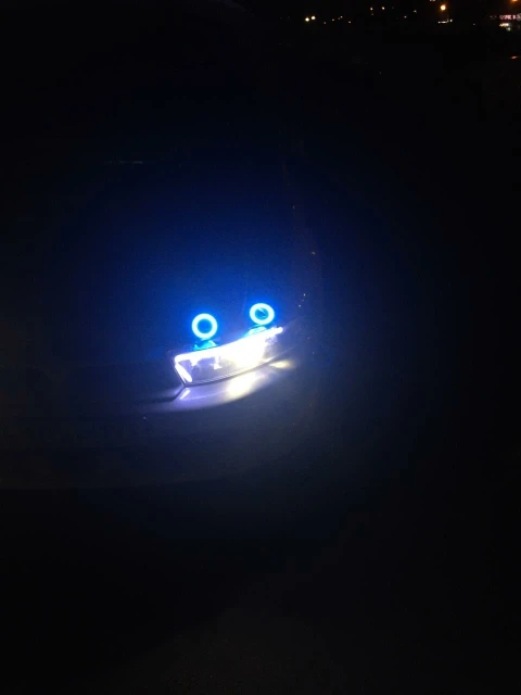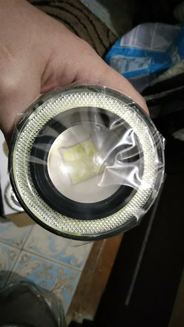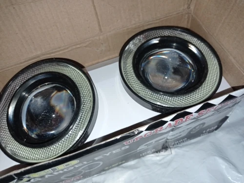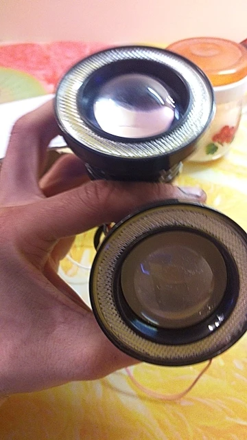 за 770р хороший вариант, нормальные галогенки столько стоить будут. кольцо диодов внутри болтается на обеих, отверстия под провода колец не герметичны абсолютно, обязательно нужно залить либо термо клеем либо герметиком прозрачным. думаю так на всех, не только у меня. в одной линзе мусор, очень заметно, но на свет не влияет.