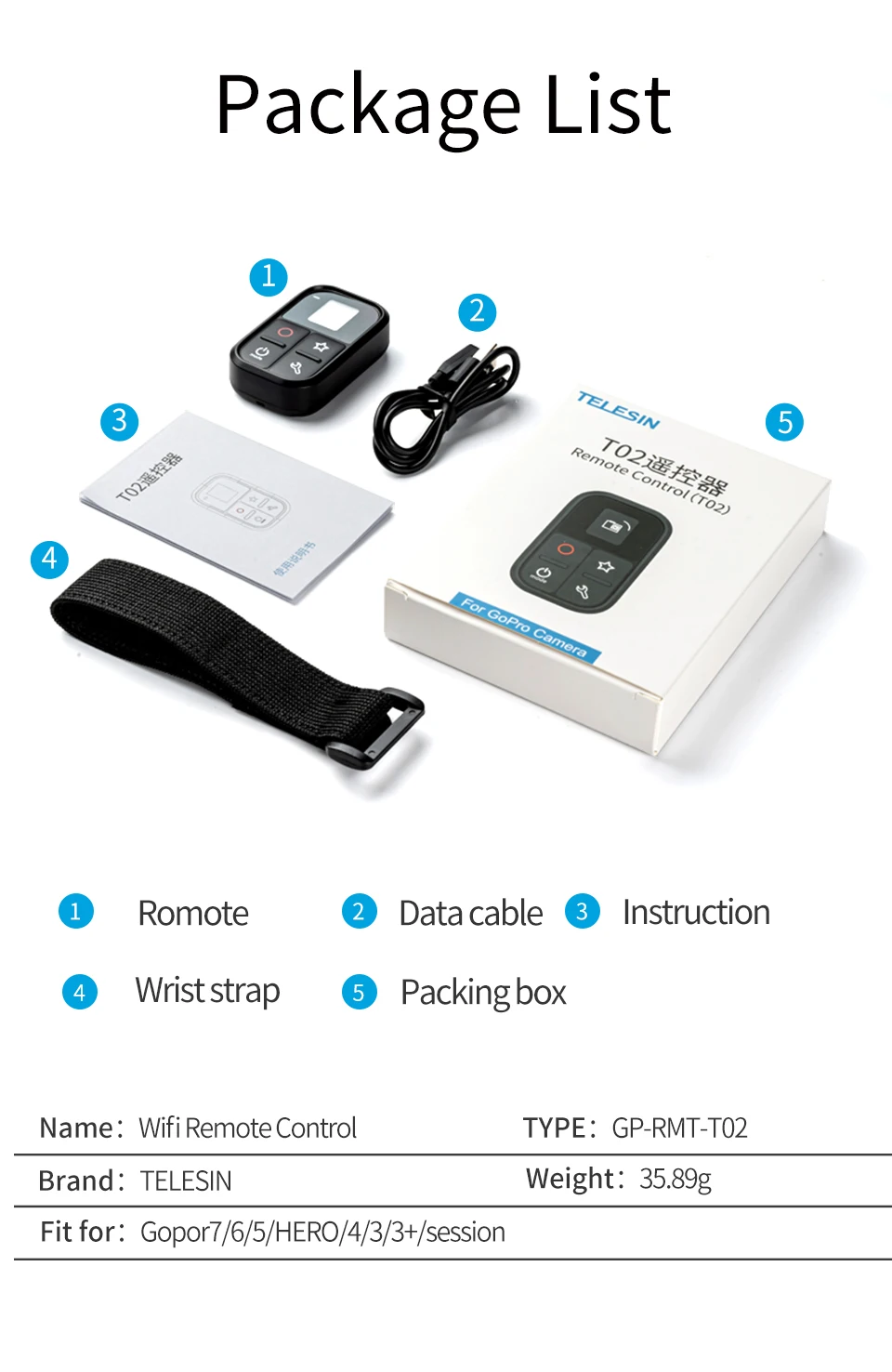 1 пульт дистанционного управления Wifi USB кабель (1 шт.); 1 х ремешок на запястье Инструкция (1 шт.) 1 х упаковочная коробка