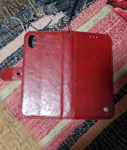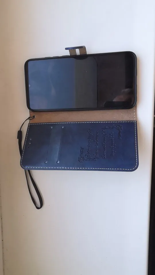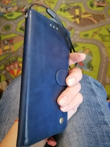 Хороший чехол! Закрывается на скрытый магнит. Цвет глубокий синий, красивый, строчка ровная синими нитками. Никакого логотипа нет. Внутри два прореза для пластиковых карт и под ними скрытый кармашек для денег, например. Удобно, можно использовать как мини клатч для прогулки и не брать сумку). В комплекте идёт шнурок, на запястье можно носить, но я не использую.