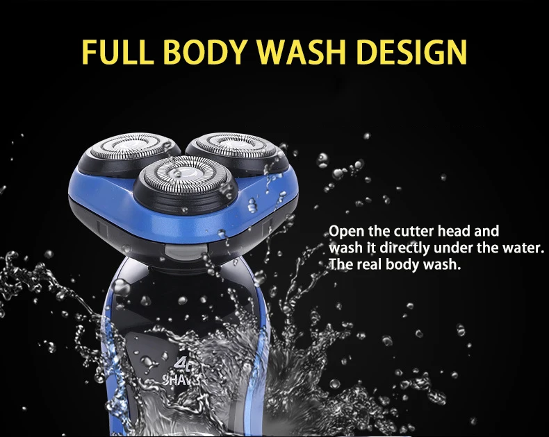 3 независимыми головками Велосипедное лезвие, трехмерная конструкция головки.Автоматически регулируйте угол бритья в соответствии с вашим лицом.Мойка для тела предназначена для нанесения краску водопроводной водой.