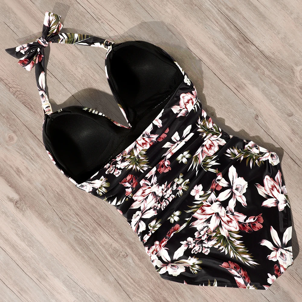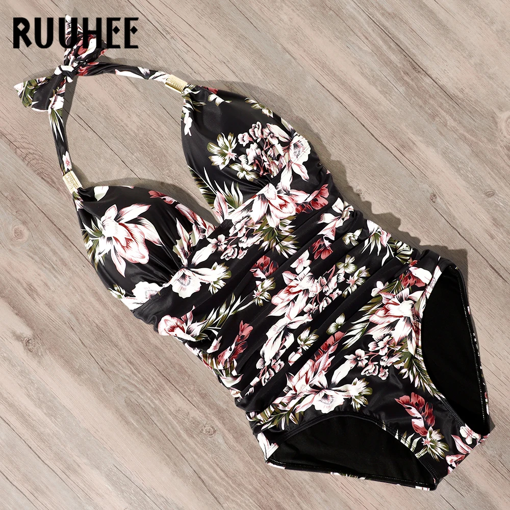 RUUHEE купальник пуш-ап цельный купальник женский черный купальный костюм топ с лямкой на шее купальный костюм летняя пляжная одежда Монокини 2022