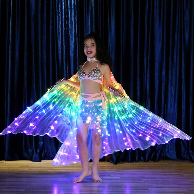 Детский светодиодный плащ для танцев, светящийся, крыло бабочки, танец живота, карнавальный наряд, TUE88