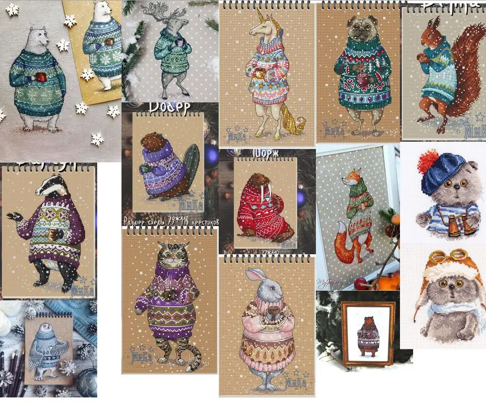 Новинка; Вышивка крестиком с разными животными; Посылка в виде живо...