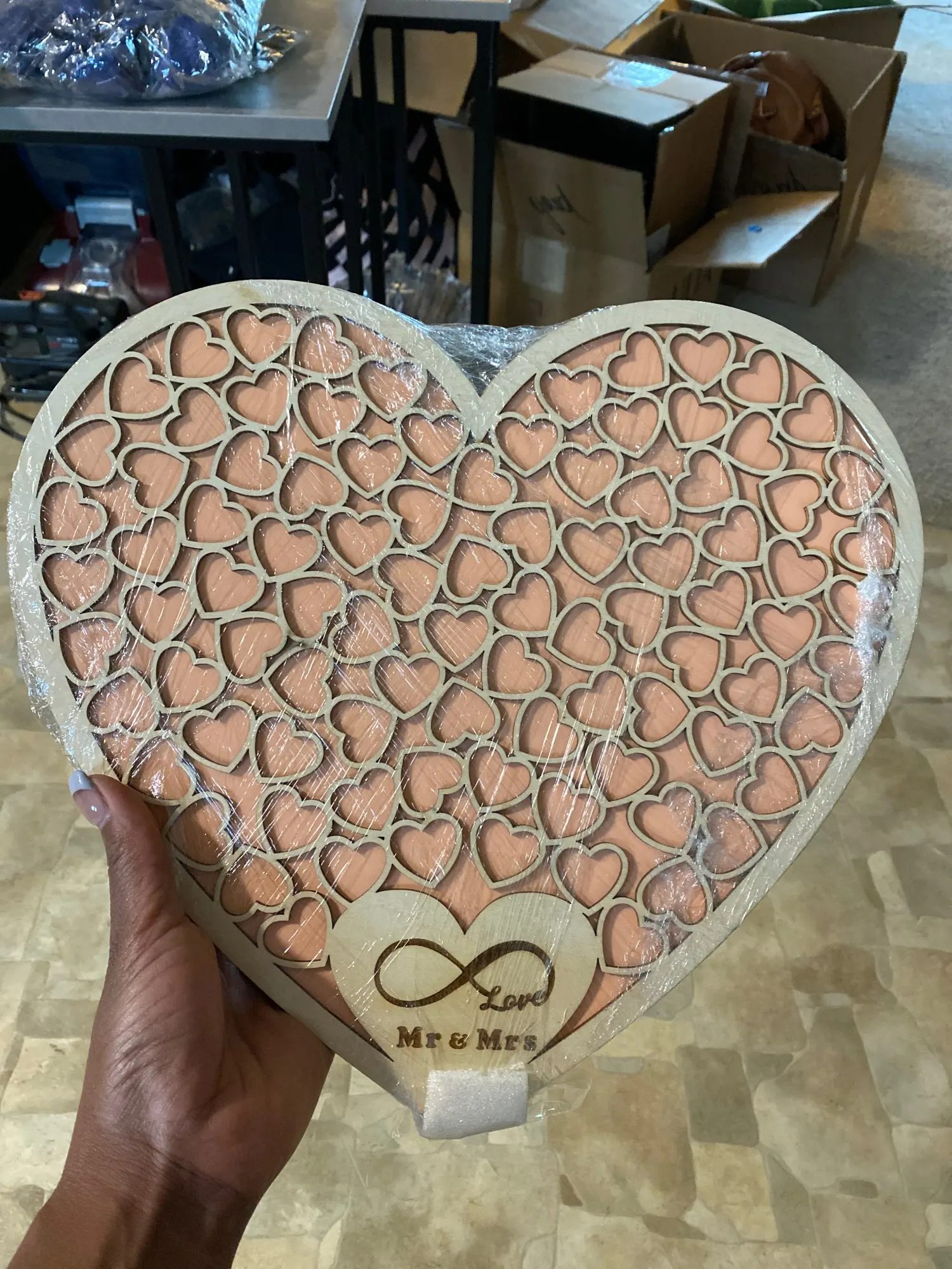 Свадебная Гостевая книга в форме сердца, украшение в деревенском стиле, розовая, в форме сердца, шкатулка для свадьбы, 3D Гостевая книга с деревянной коробкой