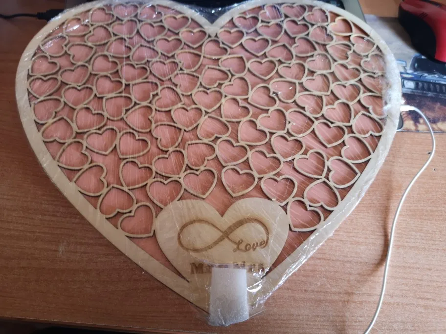 все супер, упаковано очень хорошо, отправлено и доставлено быстро. собирается легко, качество отличное.(в разы лучше чем можно у нас в магазинах купить) для сравнения вложил 1 рубль в сердце чтобы размер понимать. вобщем однозначно рекомендую к покупке.