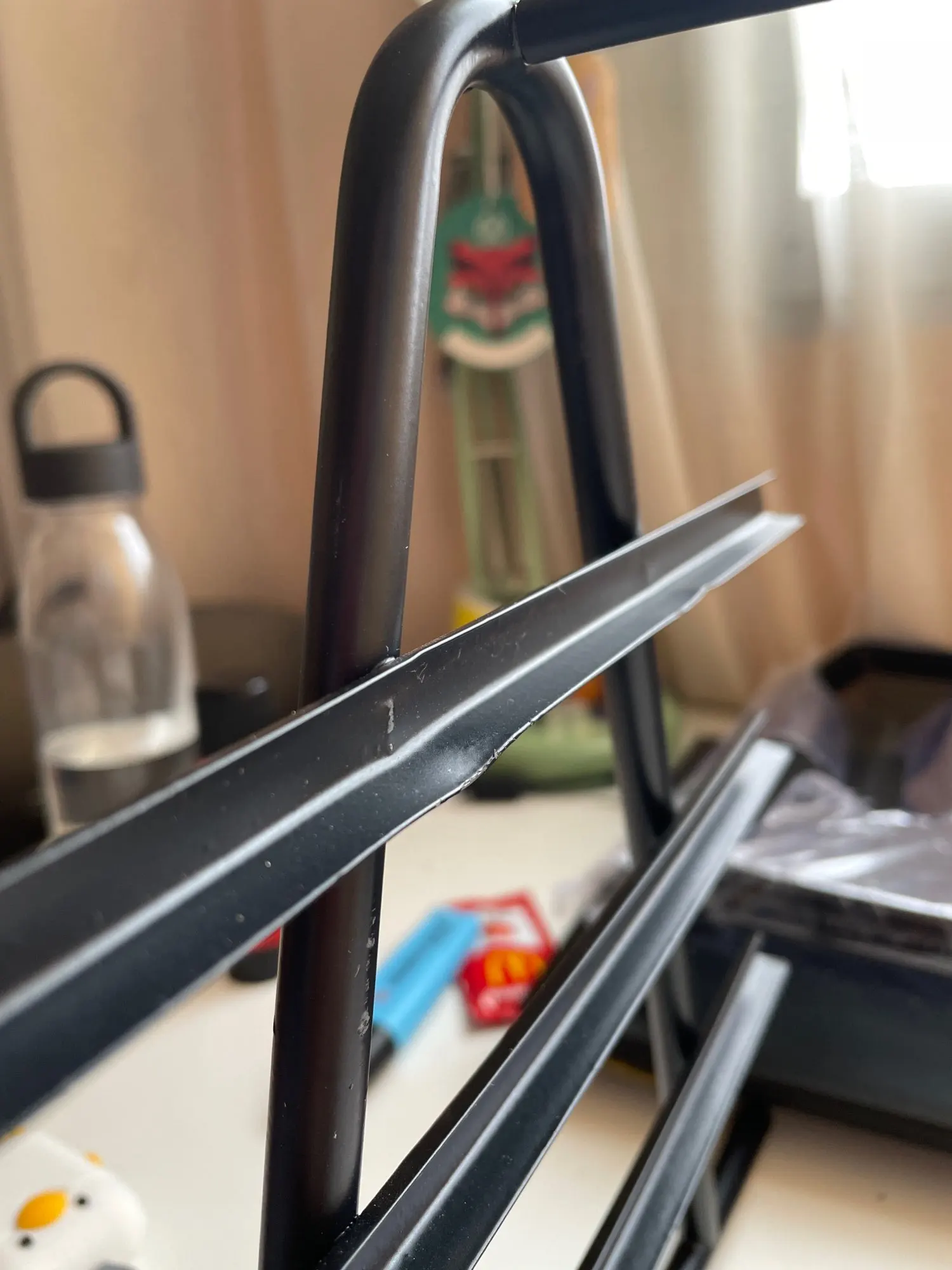 В целом всё хорошо, но есть косяки: содрана краска на некоторых местах, возможно, из-за того, что в коробке детали лежали без всякой обёртки и бились друг о друга. Вобщем для новой вещи не очень приятно, хотя на использование не влияет. Что хорошо: вся конструкция железная, не сломается. Но было немного кривовато при сборке, пришлось "выравнивать". Быстрая доставка.