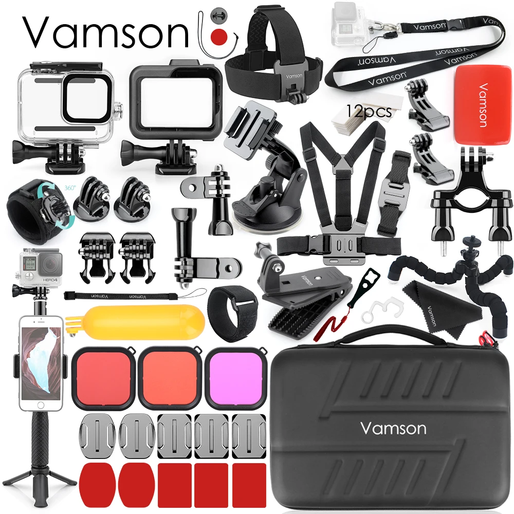 Комплект аксессуаров Vamson VS20 для Go Pro, водонепроницаемый чехол для GoPro Hero 8, черный штатив для камеры, крепление для GoPro 8 Black