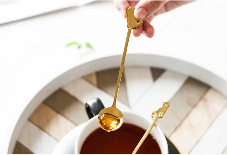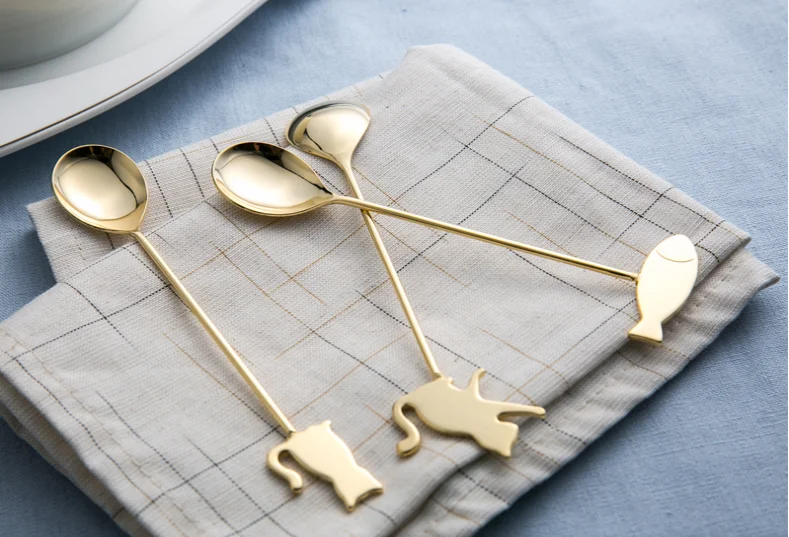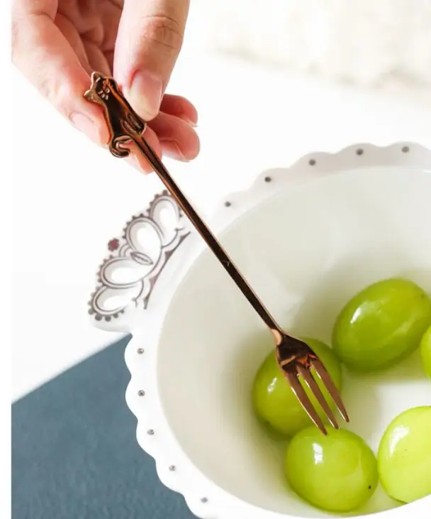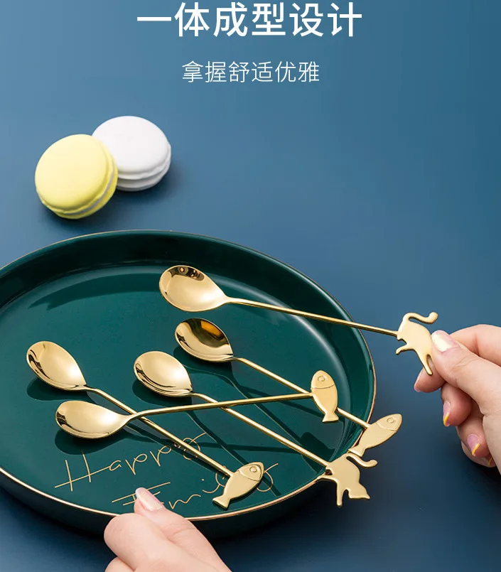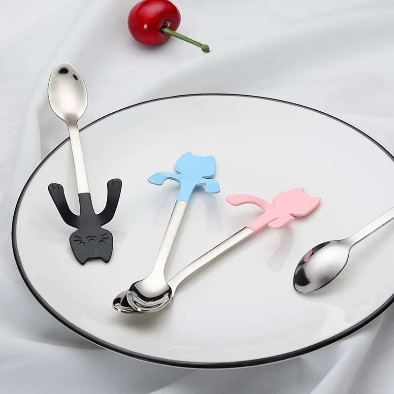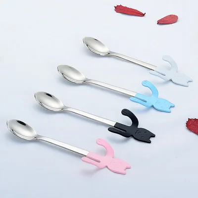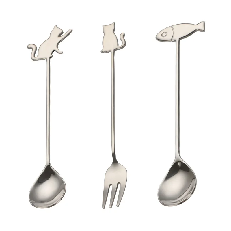 Милый 304 Нержавеющаясталь Китти Кэт фруктовая вилка ложка для размешивания кофе мешалка, нержавеющая сталь льда Чай ложка десерт Совок Ложки с длинной ручкой, столовые приборы
