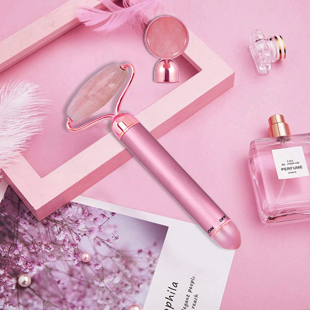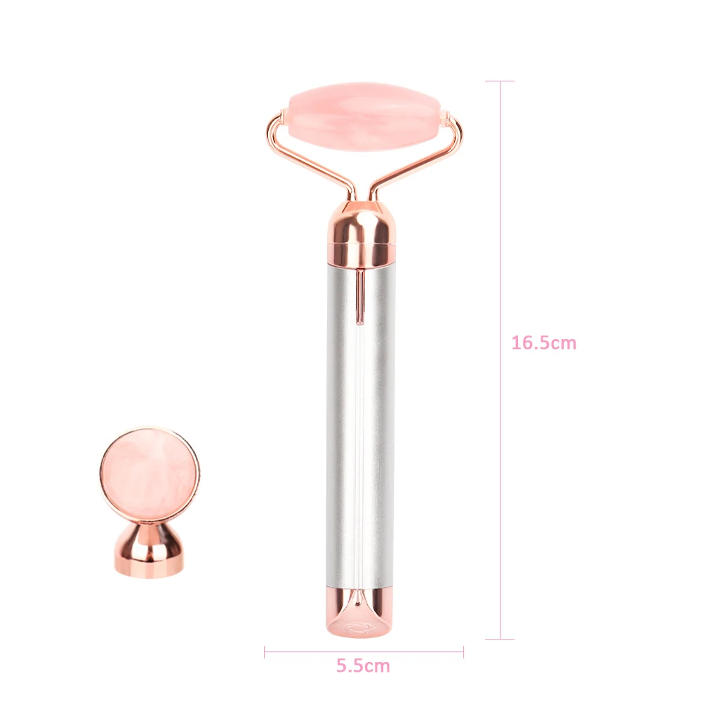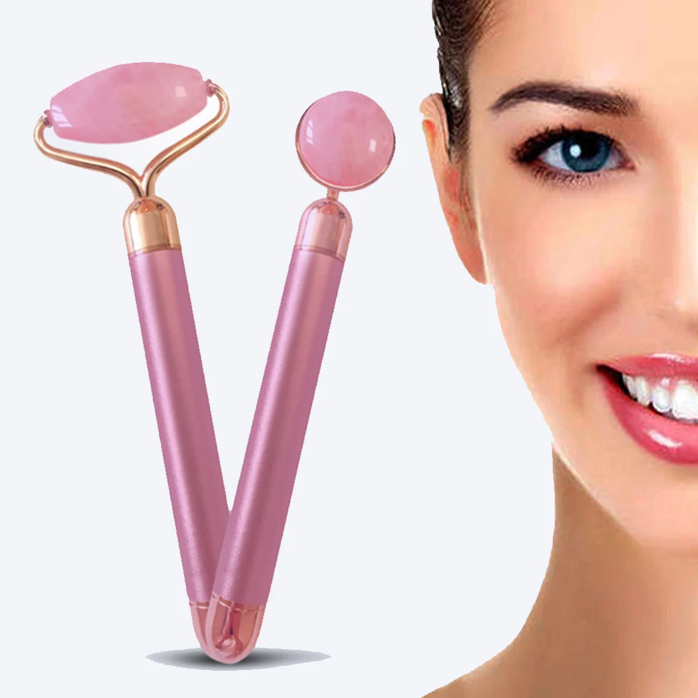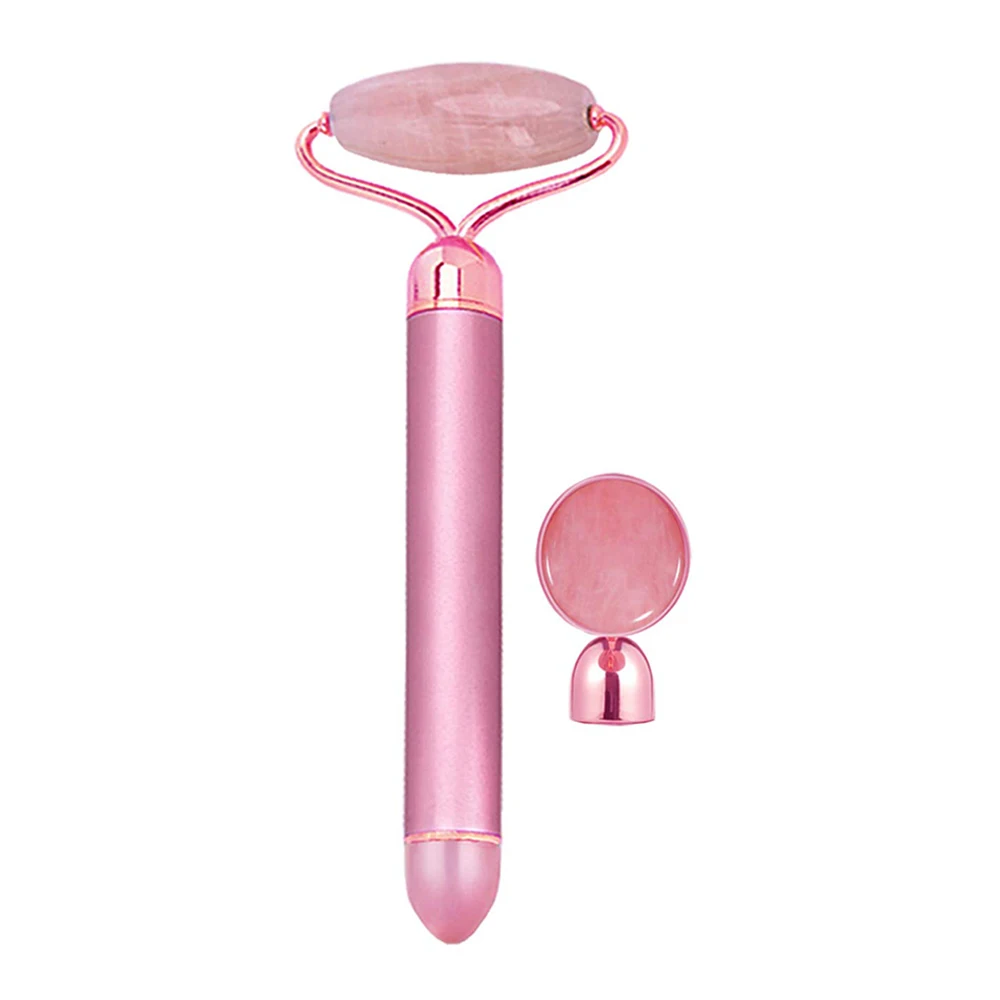 2 в 1 Электрический нефритовый роликовый массажер для лица, натуральный розовый кварц, Набор роликов для лица, массажный камень для рук, глаз и носа, для лифтинга лица, против старения, против морщин, укрепляющий для лица