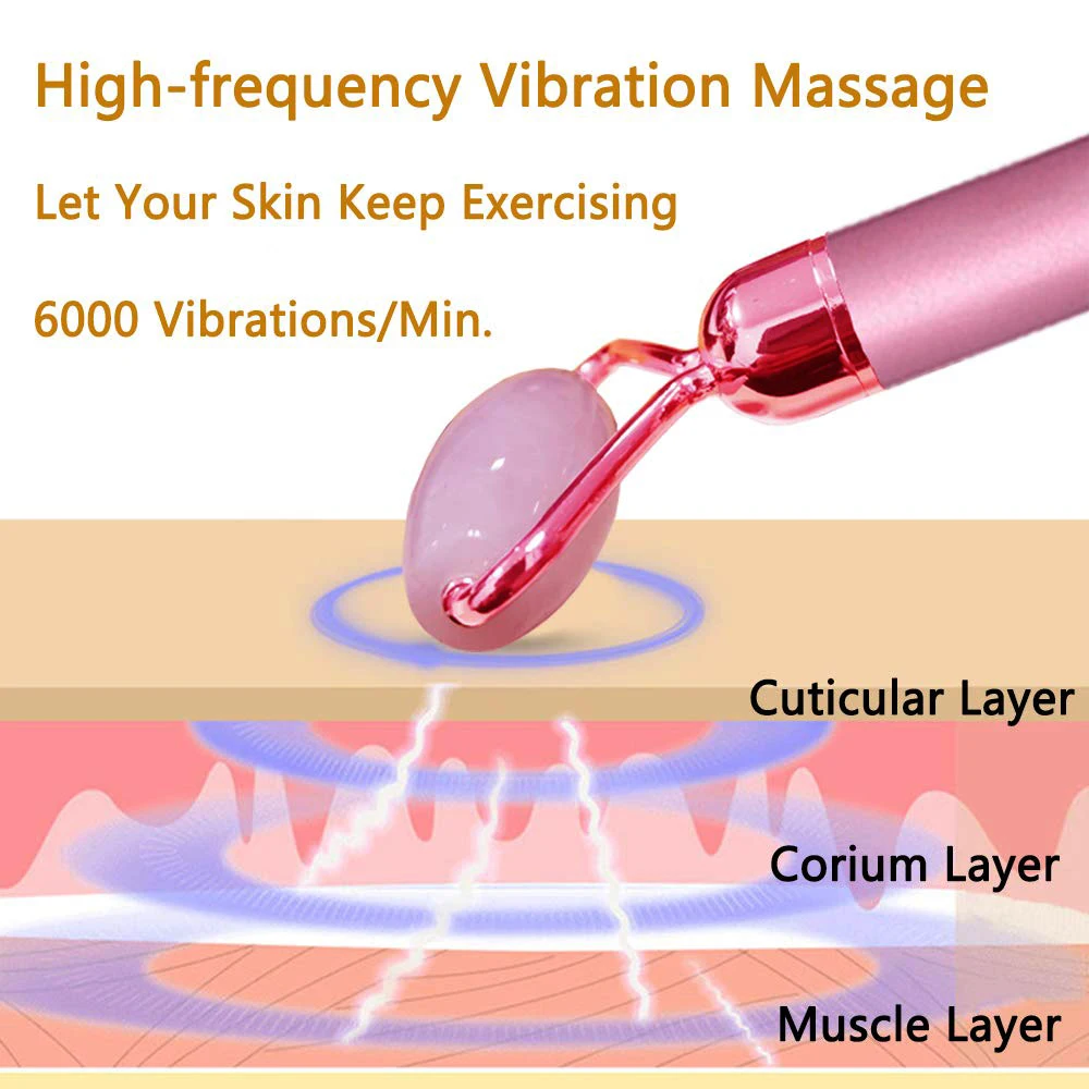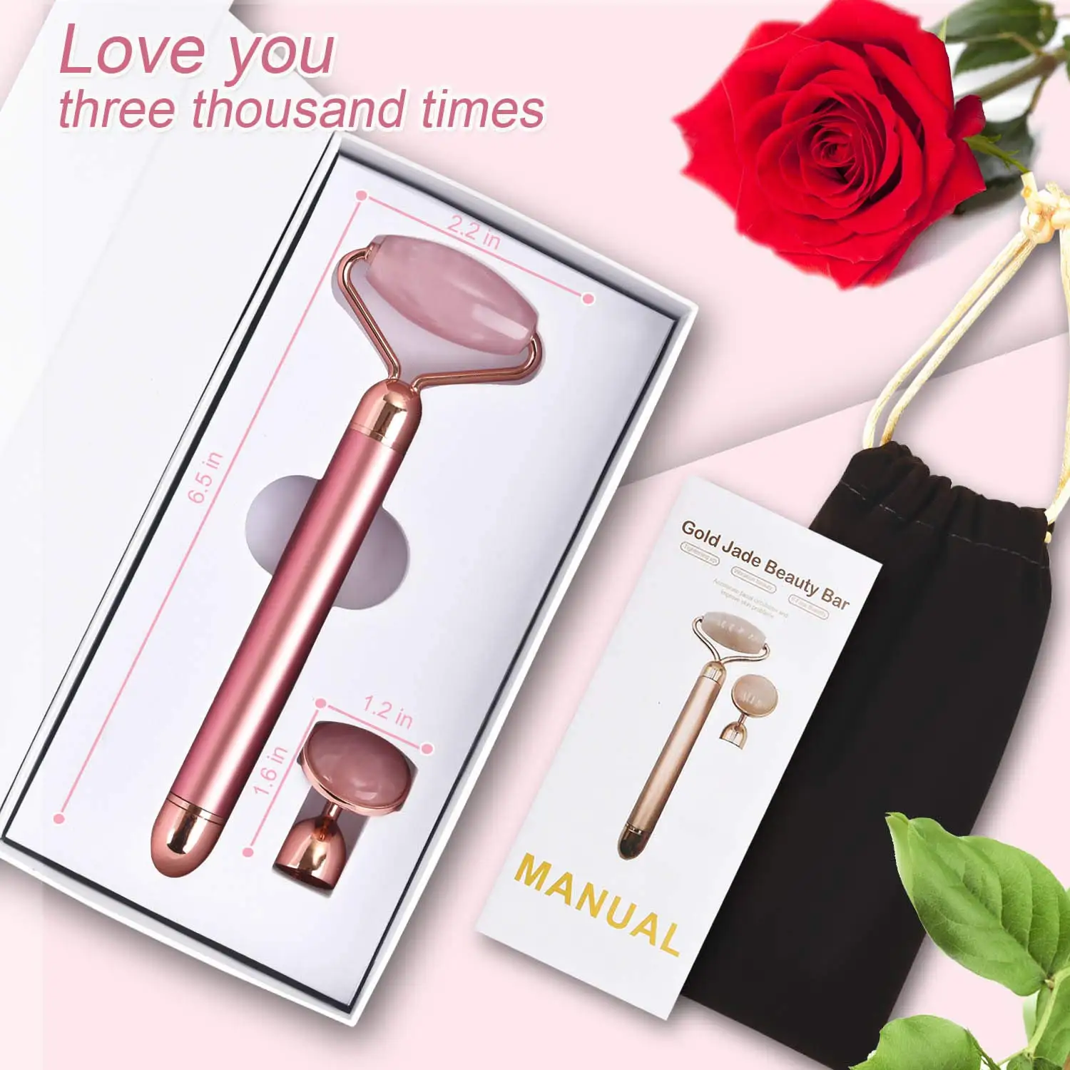 ❤Новый дизайн: он сочетает в себе преимущества нефритовых и электрических массажных роликов для лица. С его помощью ваша кожа может не только поглощать натуральные минералы, но и наслаждаться высокочастотным ударным массажем