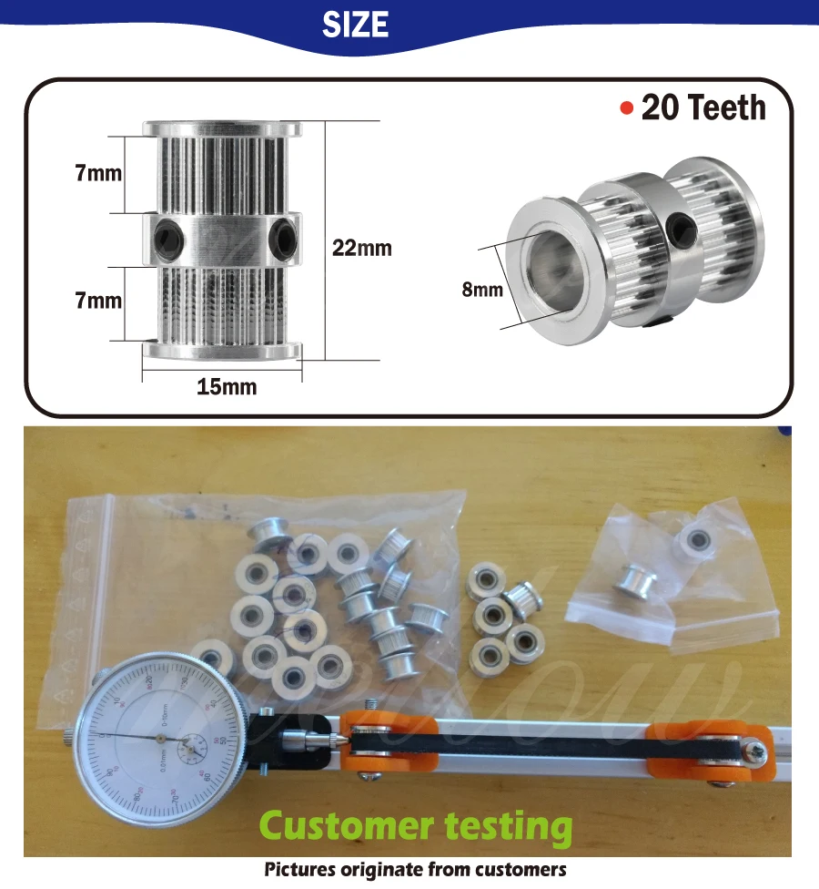 Шкив приводной Mellow для 3D принтера GT2, зубчатый шкив с 20 зубцами, отверстие 8 мм, зубцы с двойной головкой из алюминия для ремня GT2, ширина 6 мм
