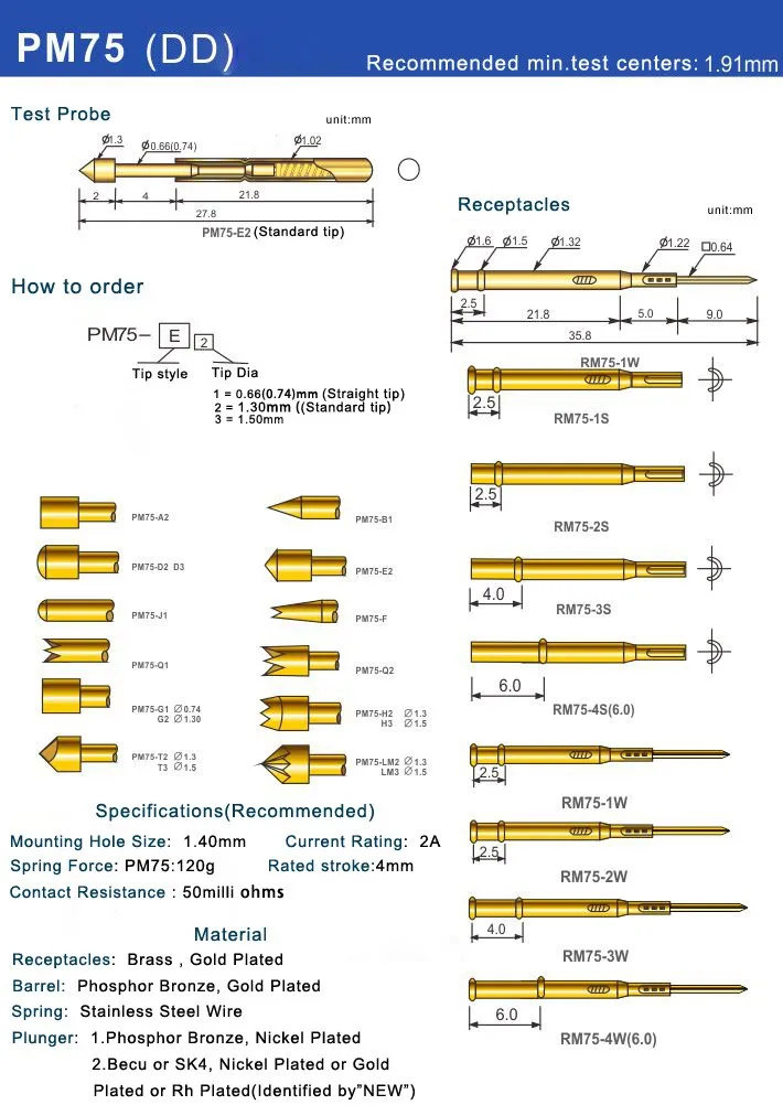 Пружинный тестовый зонд Pogo Pin предназначен для тестирования печатных плат