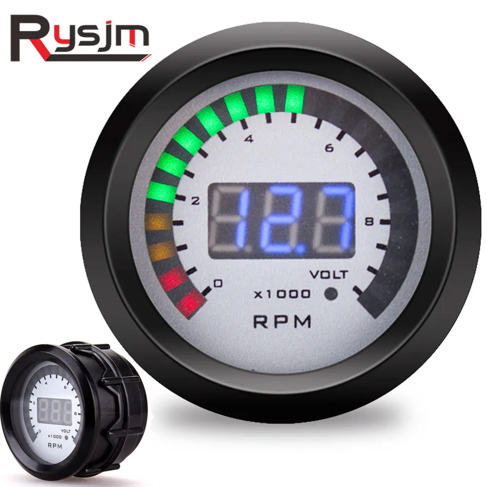 12 В 52 мм Автомобильный Тахометр + Вольтметр Калибр напряжения мотоцикл вольт 10000 об/мин Метр светодиодный цифровой индикатор tach Многофункциональный