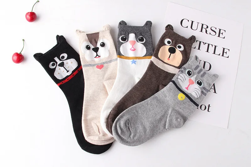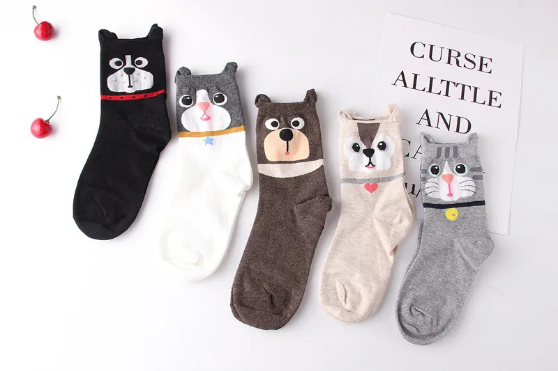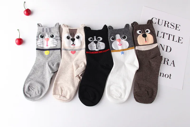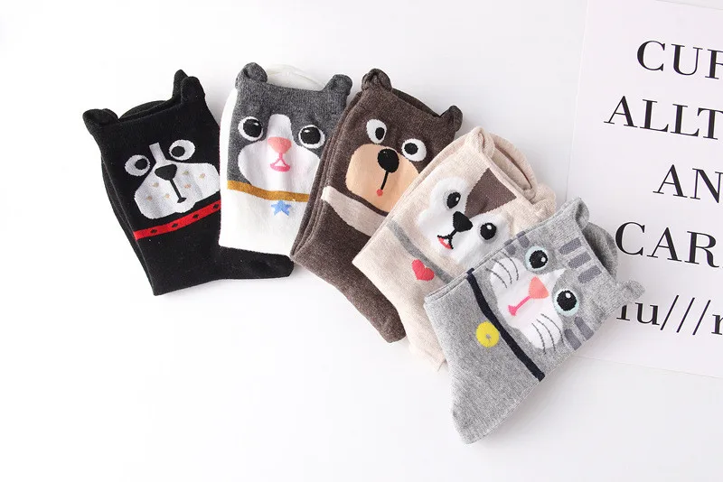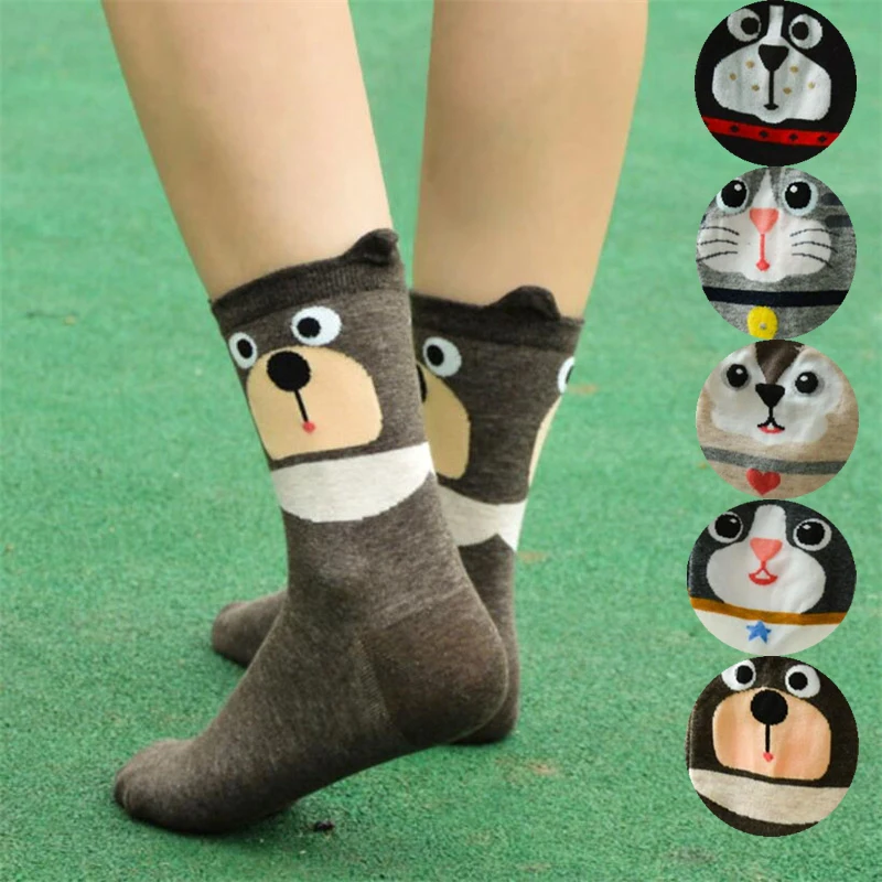 Женские носки с мультяшным рисунком 1 пара, Модные Цветные Теплые Носки с рисунком мопса Шиба-ину, женские забавные хлопковые носки в Корейском стиле с животными