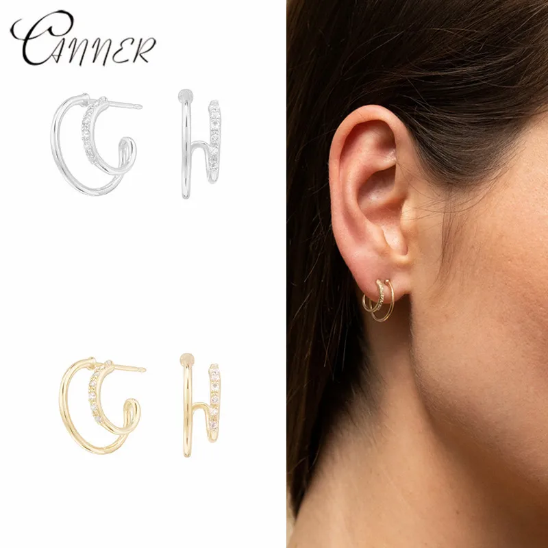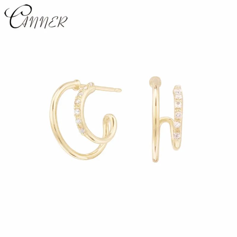 Женские серьги-гвоздики с кристаллами CANNER, простые серьги из стерлингового серебра украшения для свадьбы пробы в Корейском стиле, подарки на Рождество
