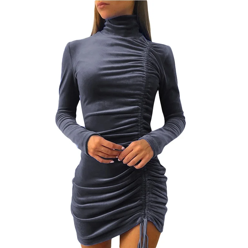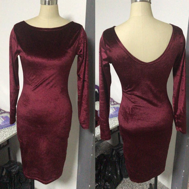 Женское Бархатное облегающее вечернее платье-карандаш средней длины с длинным рукавом, бордовое, черное, синее