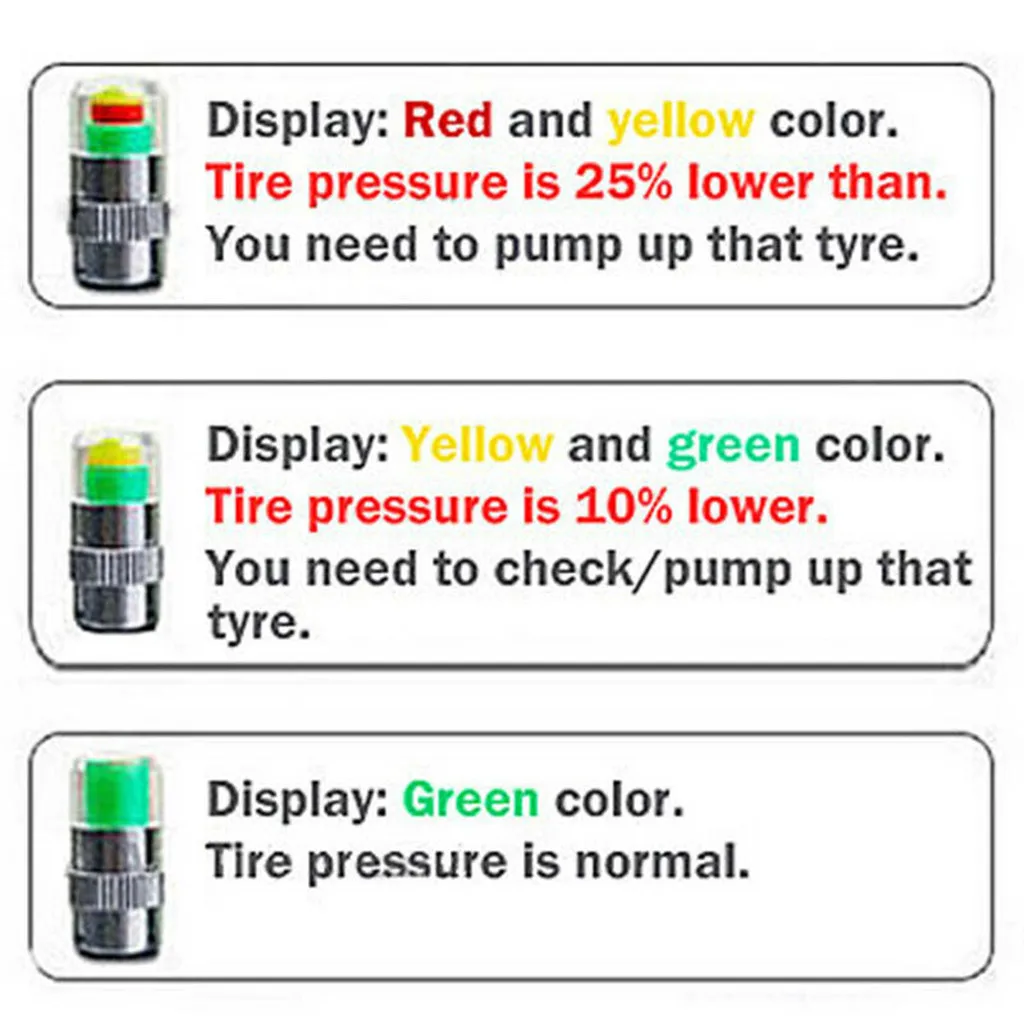 4 шт. Авто клапан для шин Кепки Таблица значений давления в шинах шинный манометр контроля Предупреждение Кепки подходит для любого стандартного размера клапан для шин стержня