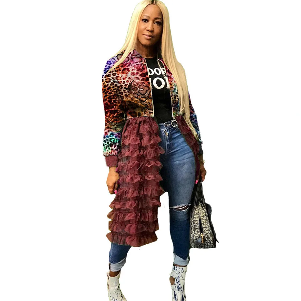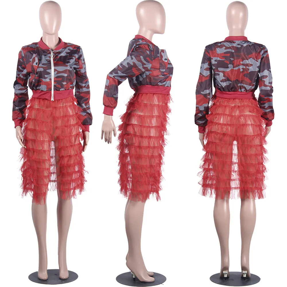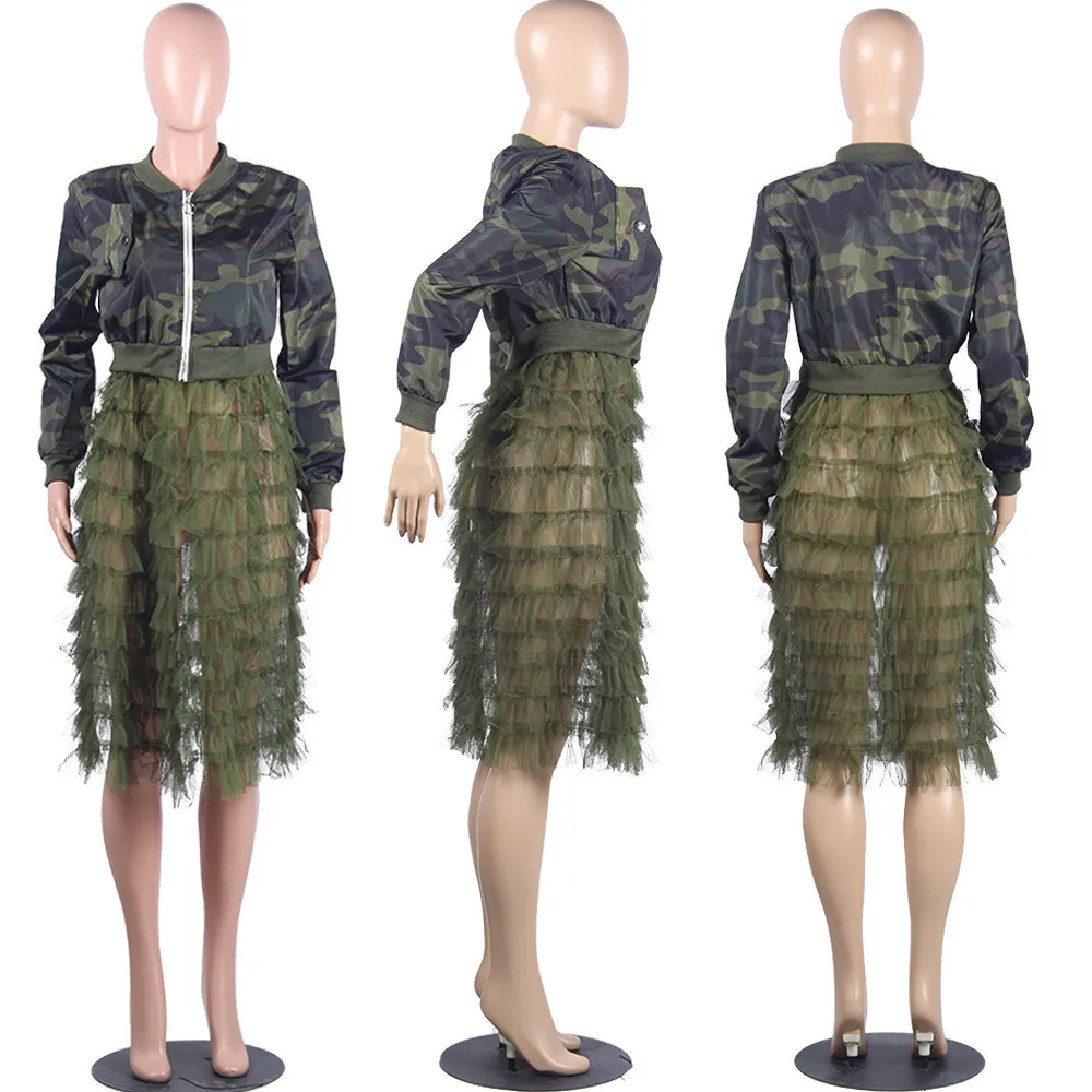 Женская камуфляжная куртка-бомбер, осенне-зимняя уличная одежда, куртки в стиле Харадзюку, длинное пальто с многослойными оборками, верхняя одежда, Chaquetas