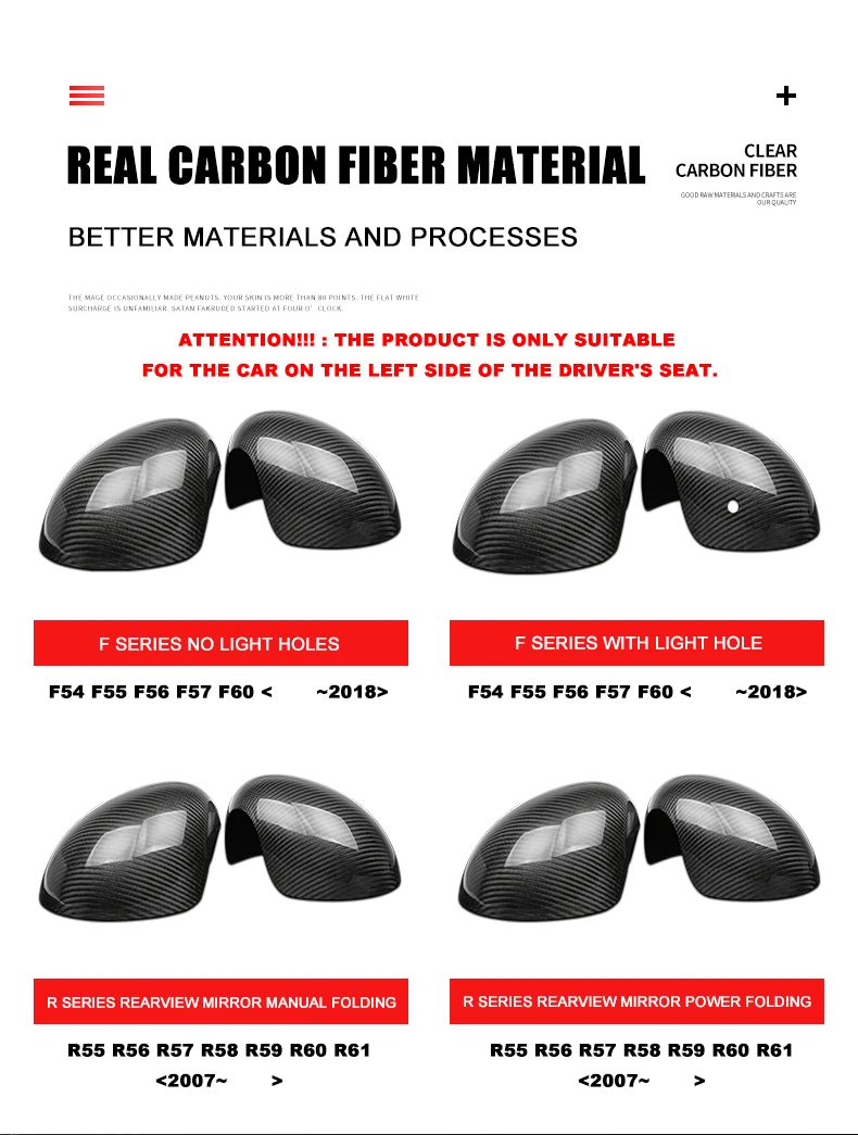 Для мини-Медь Mini Countryman, Mini Clubman, R55 R56 R57 R60 R61 F55 F56 F54 F60 Реальные углеродного волокна Зеркало заднего вида крышка наклейка Shell