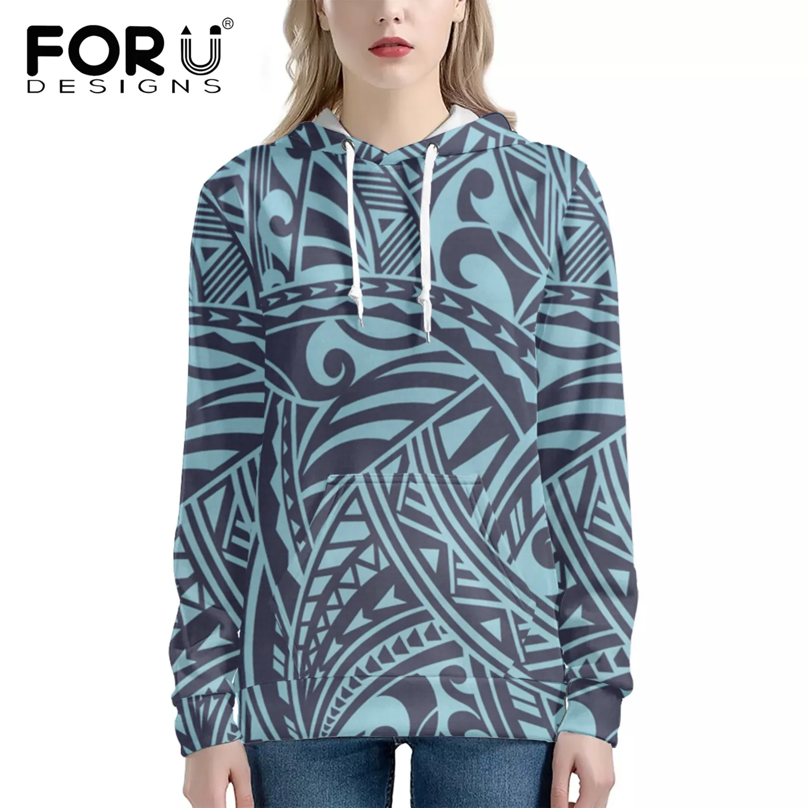 FORUDESIGNS, модная женская толстовка, полинезийский традиционный Племенной Стиль, длинные зимние толстовки для девочек-подростков, Толстовка для отдыха