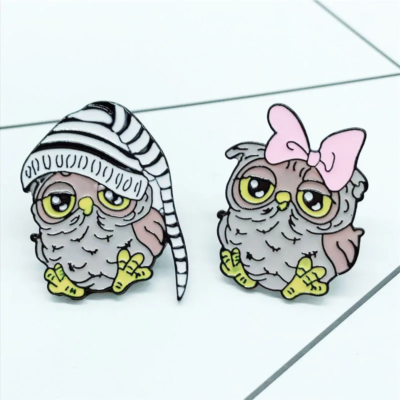 Брошь в виде совы, длиннохвостая сова, пара, брошь в виде животного...