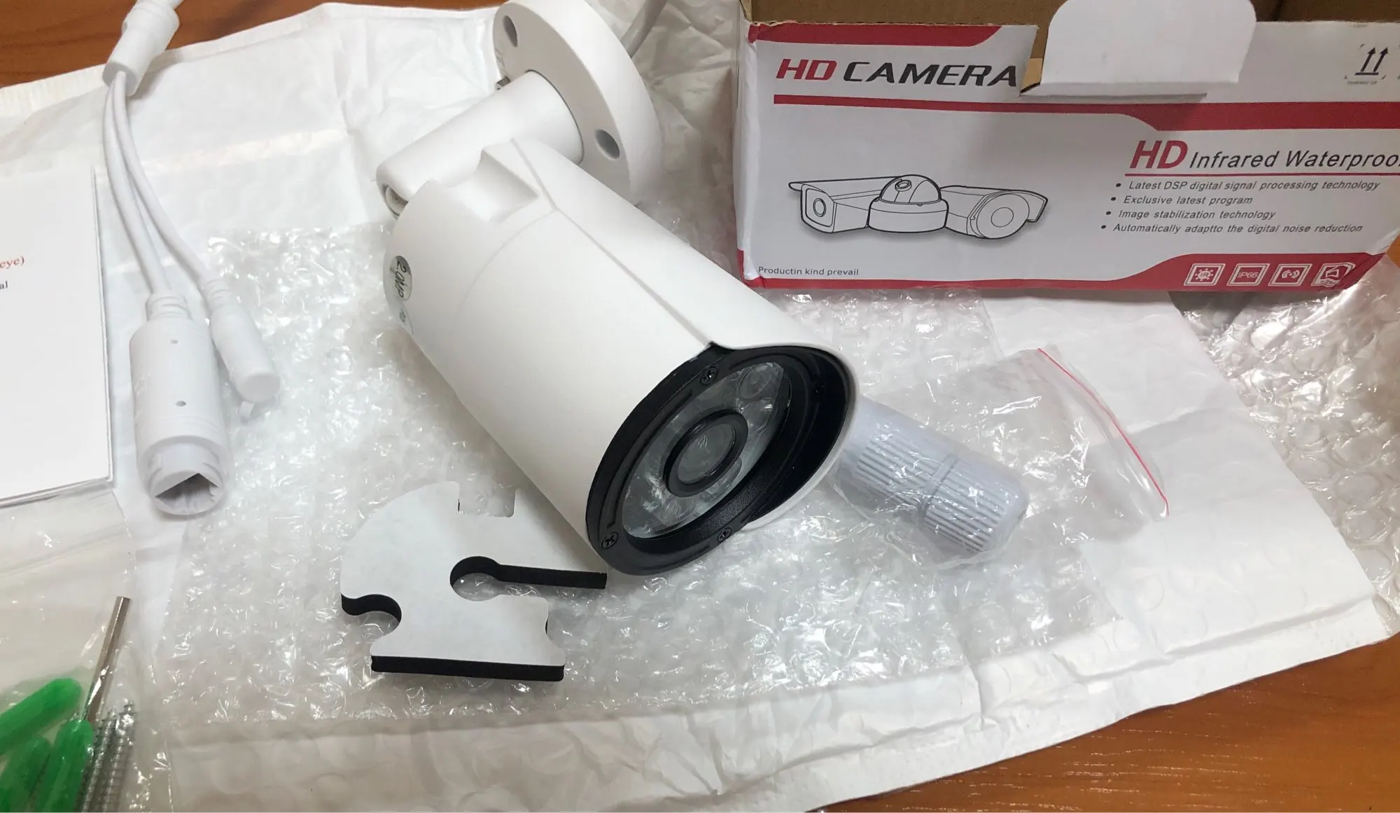 Заказ 11 ноября 2020, на почту в Беларусь прибыла 75 дней (26 января 2021), продавец после запроса продлил срок защиты. Трек отслеживался, доставка бесплатная. Т продавцп была получена скидка. Товар пришел в картонной заводской коробке, упакованной в серый почтовый пакет с пупыркой внутри. Коробка не помялась, всё дошло без повреждения. В комплекте - камера видеонаблюдения (с разъемами rj-45, dc), инструкция (по настройке xmye есть английский)комплект крепления, влагощащитная муфта. Заявленным характеристикам соответствует (заказывали 5mp, 3.6 mm, 12В). В комплекте нет блока питания, работает от 12v, достаточно одноамперника. Качество сборки и пайки не идеальное. Через DeviceManager поменял ip камеры, подключилась без проблем к XMEye, CMS. Немного греется, но не критично.