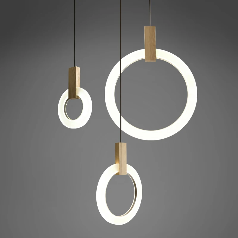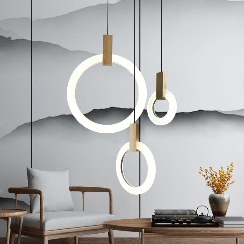 Современная люстра с деревянным кольцом, люстра, освещение, скандинавский минималистичный дизайн, лестницы, мульти кольцо, художественная лампа, дерево, блеск, Прямая поставка