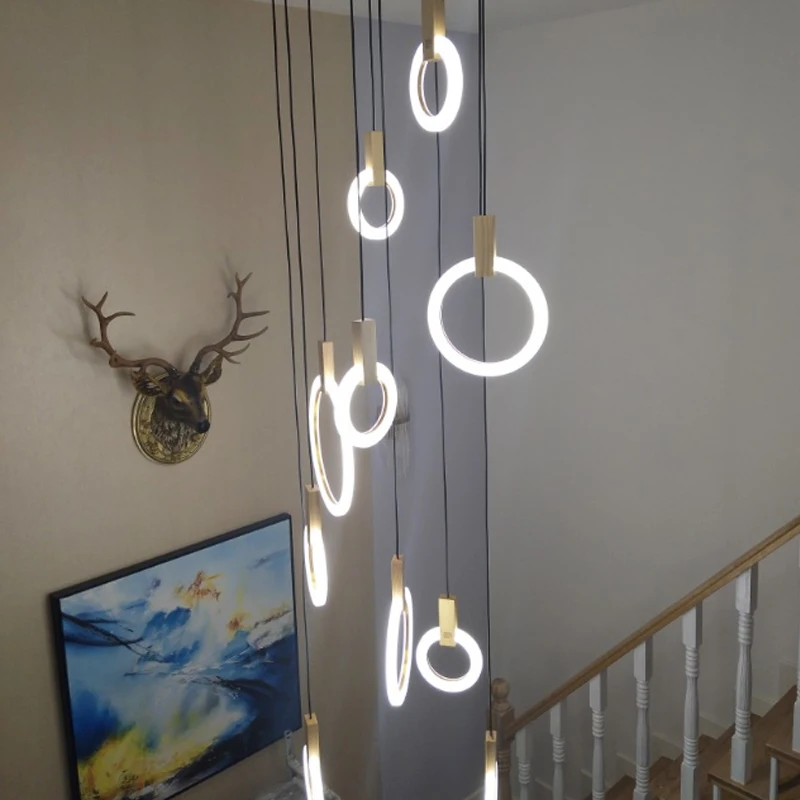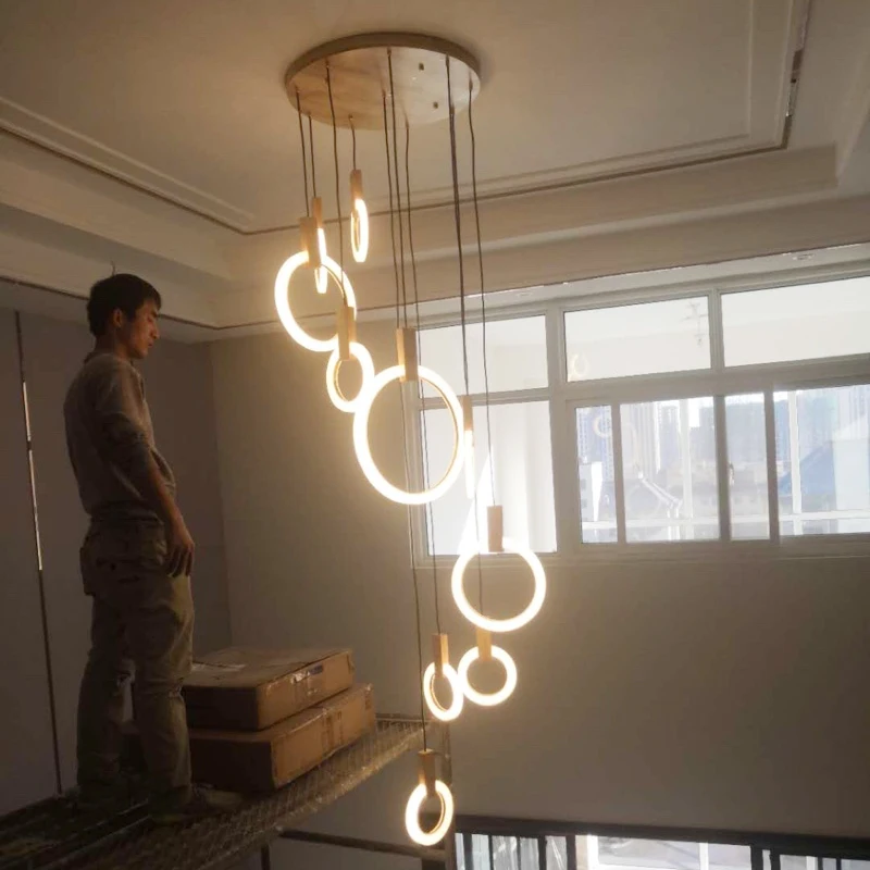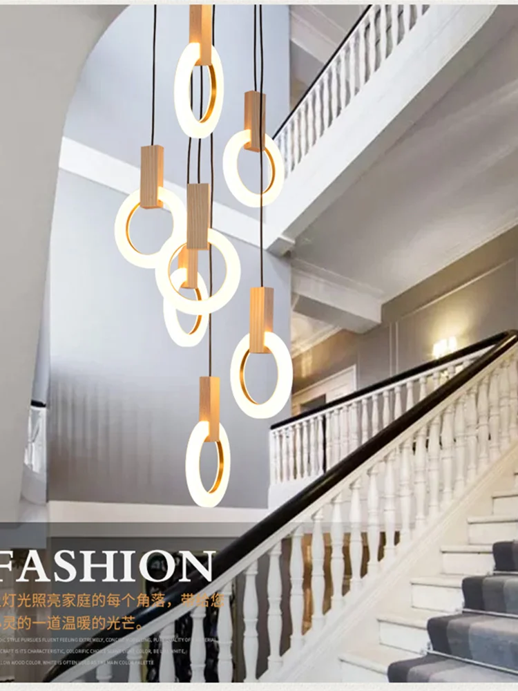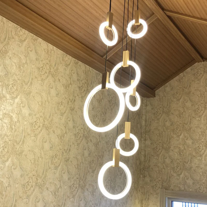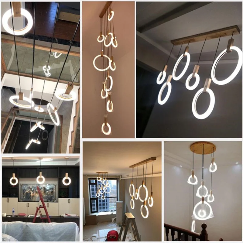 Современная Деревянная кольцевая люстра, дизайнерская лампа в скандинавском стиле для коридора, разные кольца для лестницы, Деревянный светильник, Прямая поставка