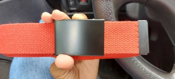 Немного непривычная пряжка по сравнению с той , у которой вертикальный длинный барашек. Но, зато не расстёгивается. Лишь бы зубчики не рвали. Ремень тонковат, но широкий. Годится. Очень быстро приехал из Китая.