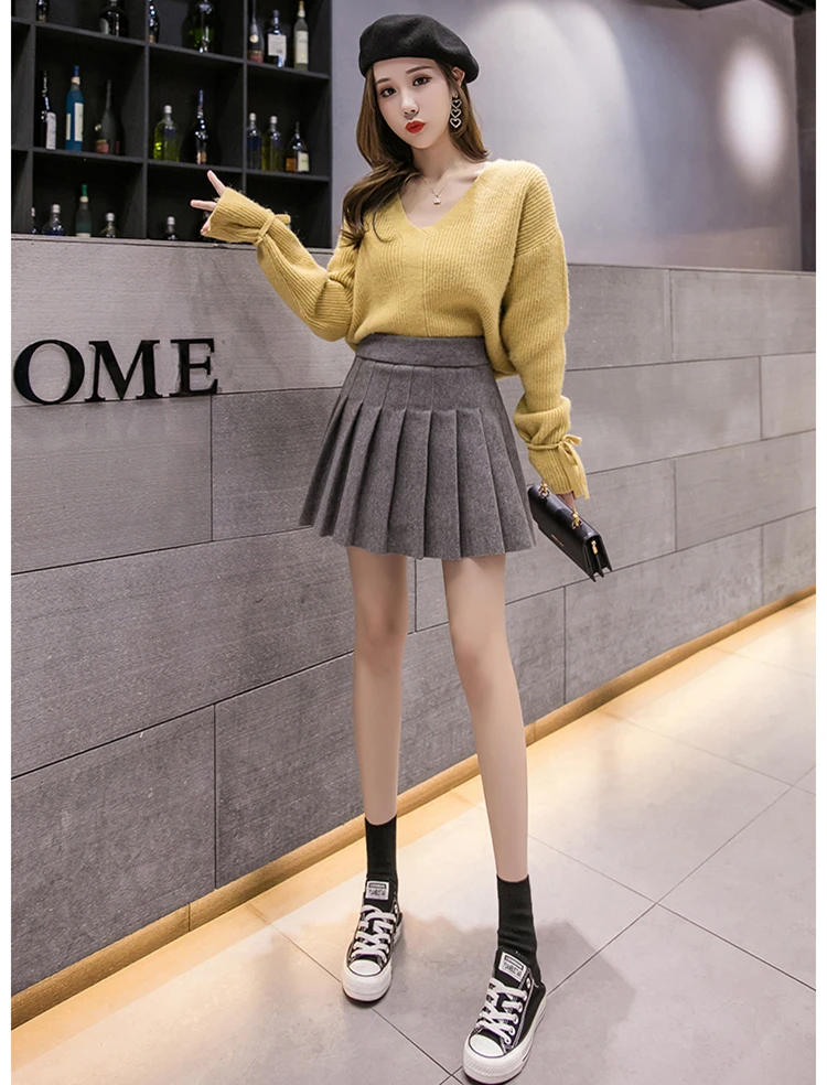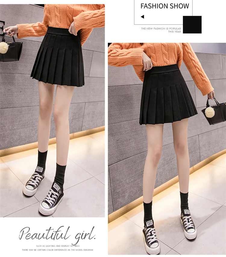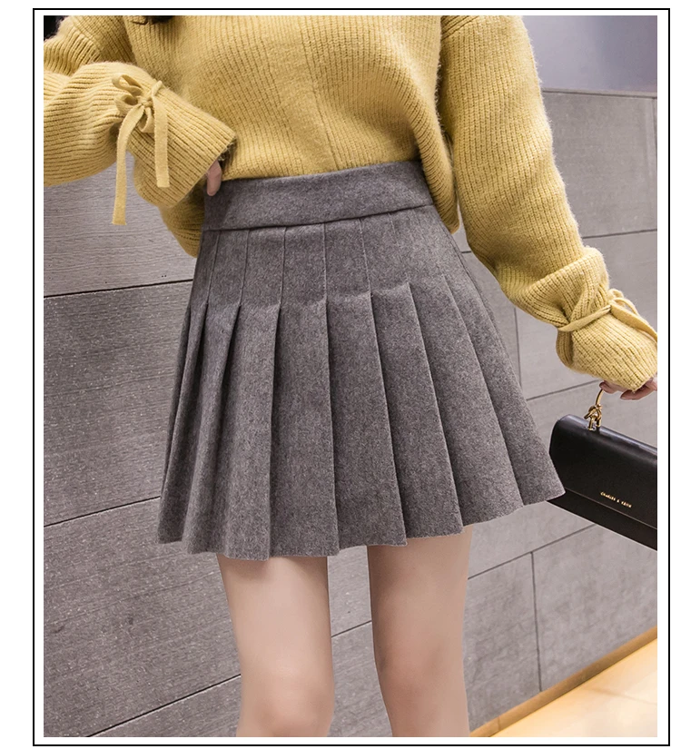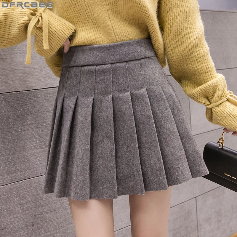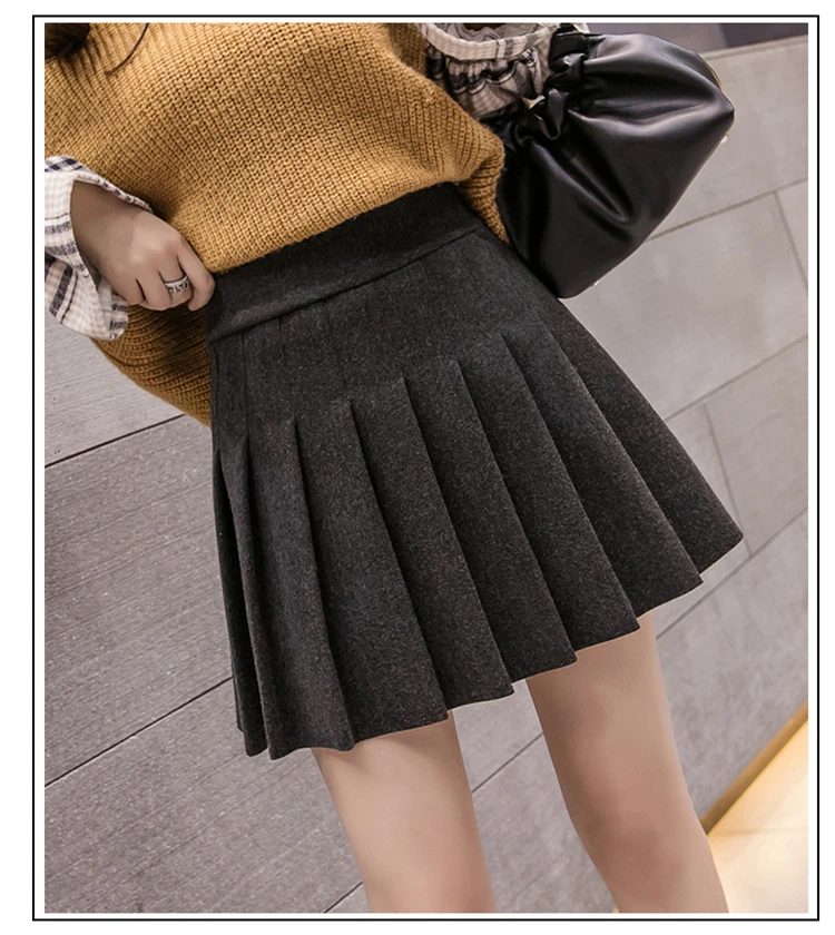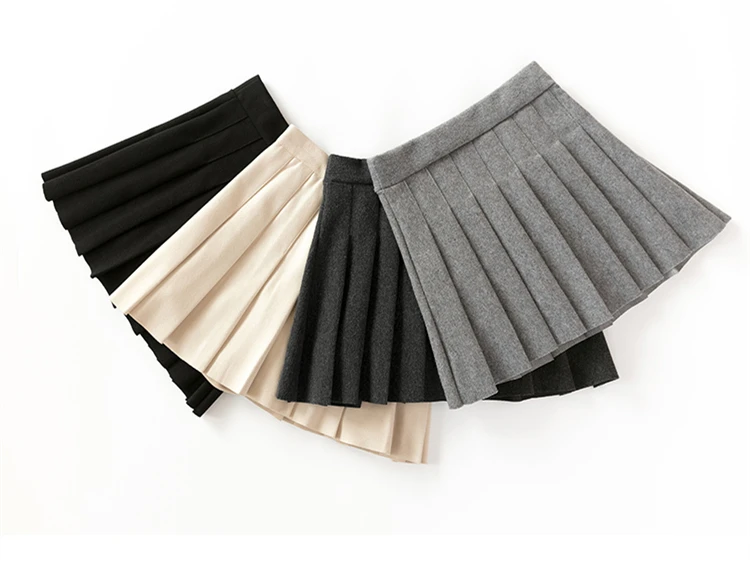 Юбка-мини Женская шерстяная, трапециевидная, со складками, для зимы