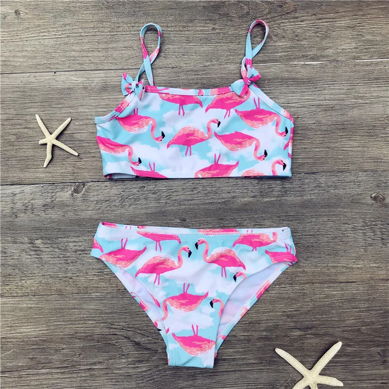 Раздельный купальник для девочек, из двух частей, с принтом фламинго