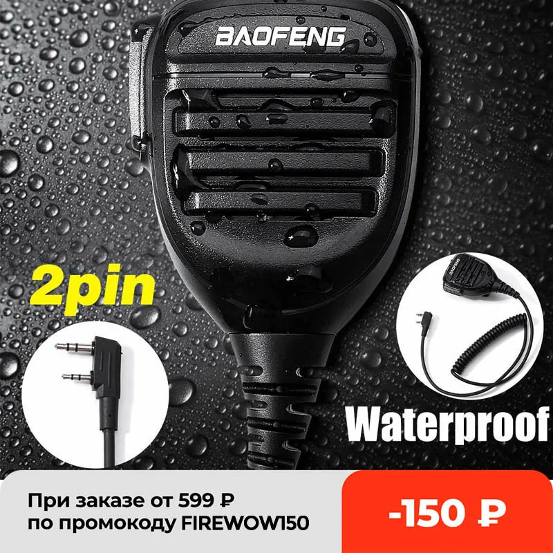 BaoFeng 2-контактный водонепроницаемый ручной микрофон, динамик, микрофон для рации Baofeng UV5R,UV-82,DM-5R Plus,BF-888s