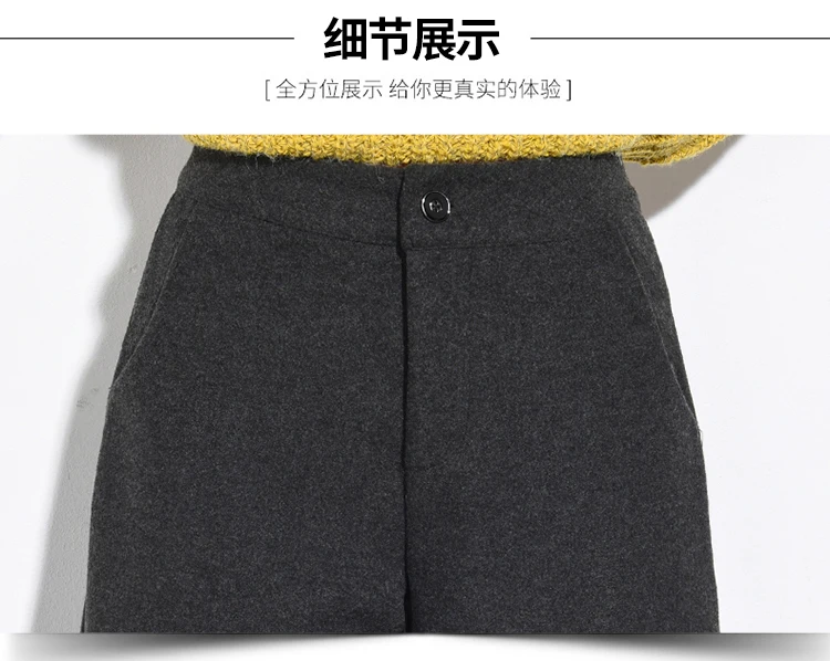 Женские шерстяные шорты с высокой талией, осенне-зимние модные плотные шерстяные широкие шорты, женские повседневные Черные Серые шерстяные шорты