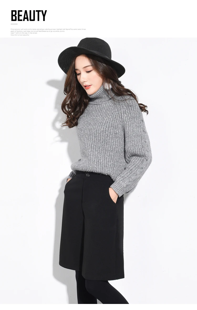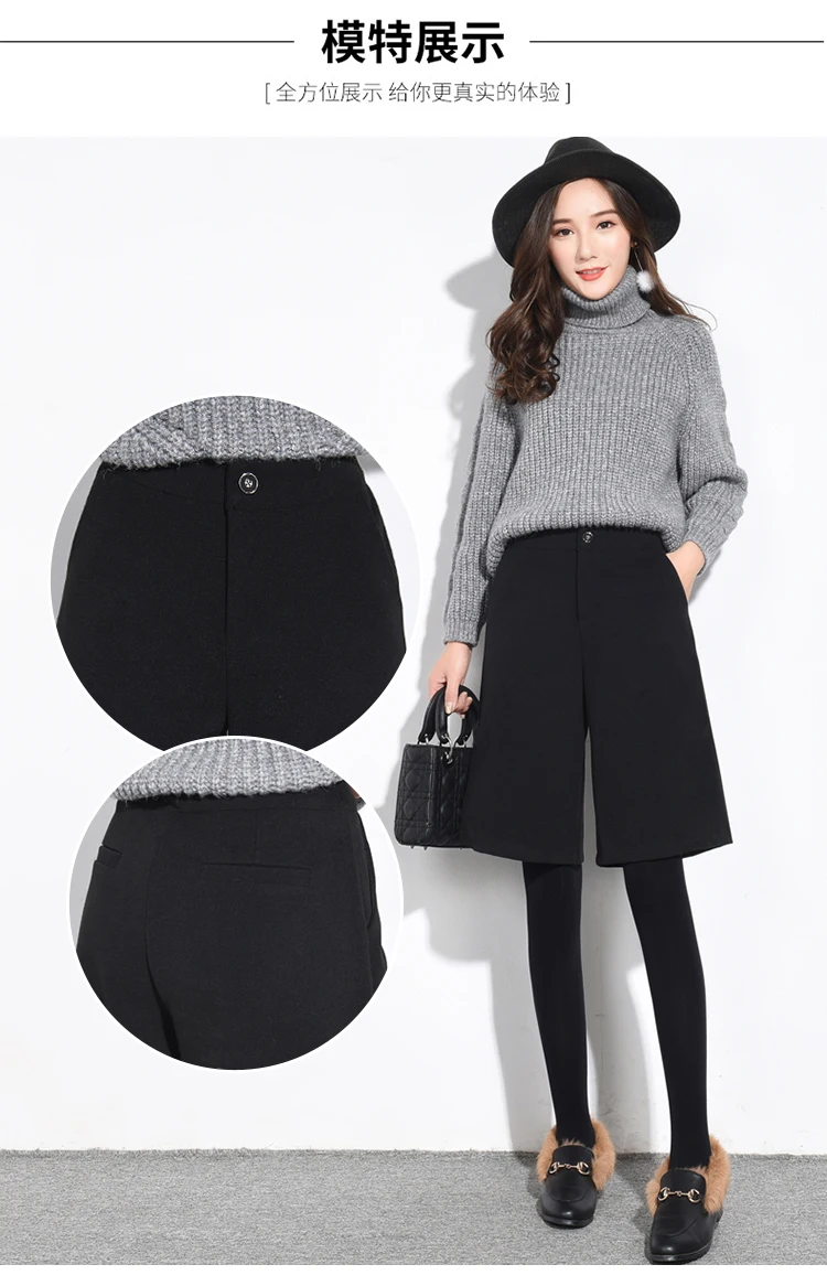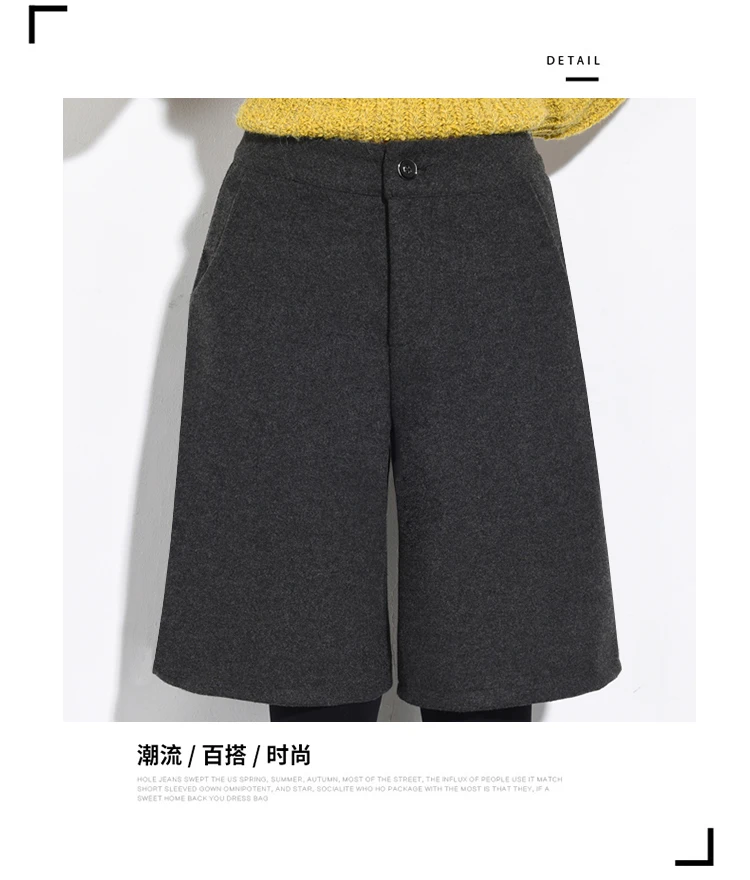 Женские шерстяные шорты средней длины с высокой талией на осень и зиму, модные плотные шерстяные шорты с широкими штанинами, женские повседневные Черные Серые шерстяные шорты