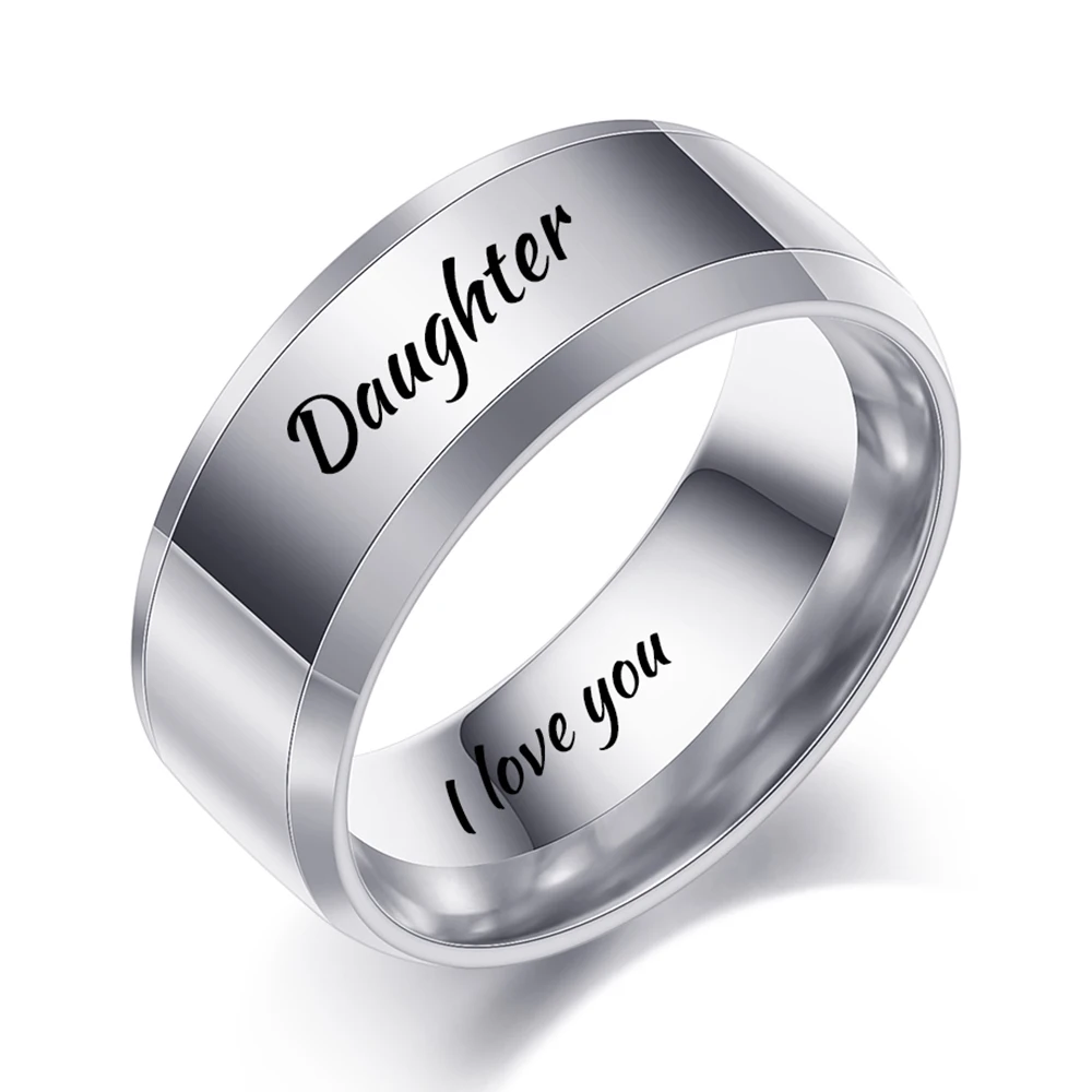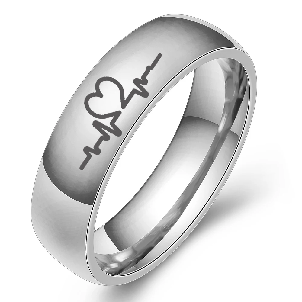 Модные полированные ювелирные изделия гравировка имени даты логотип кольцо из нержавеющей стали Свадебные Брендовое обручальное кольцо кольца для мужчин и женщин
