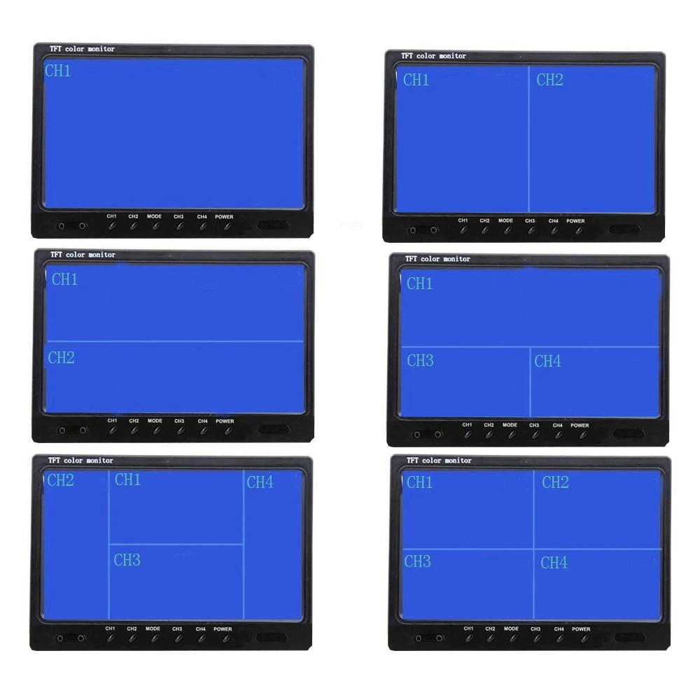 Видеонаблюдения Podofo, 9 "ЖК-экран, Разделенный экран, 4 разъема RCA, 6 режимов