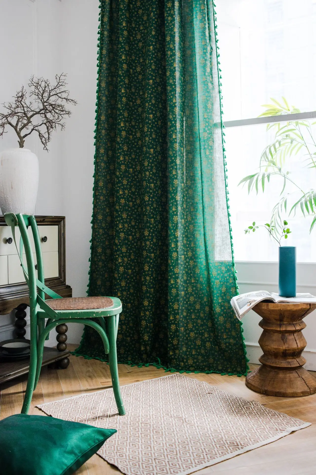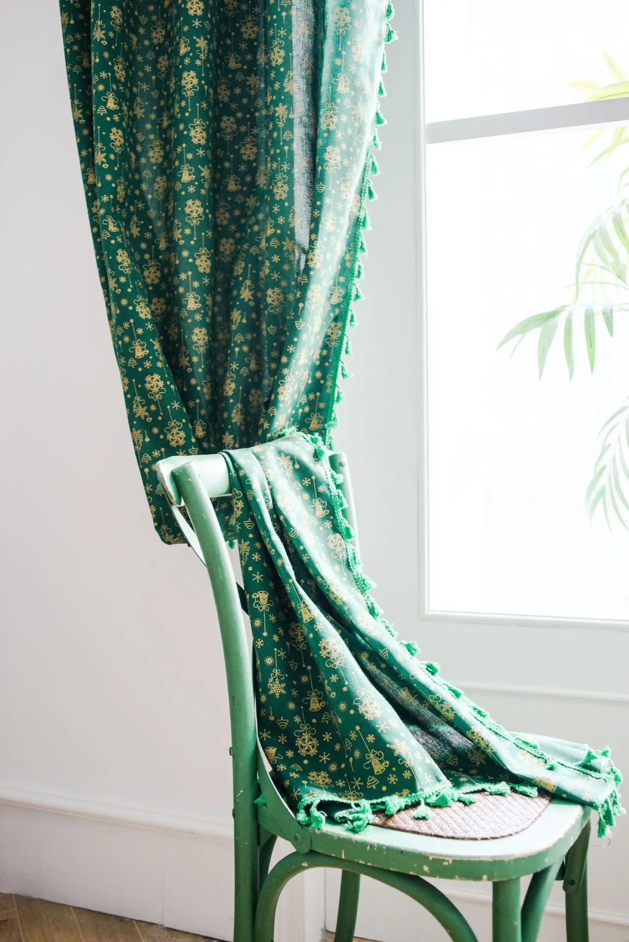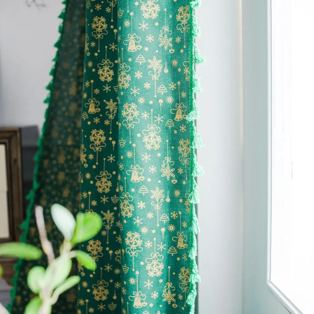 Хлопковая штора с кисточками для гостиной, спальни, окна, двери, украшение дома, Рождественский дизайн, 50% затемнение
