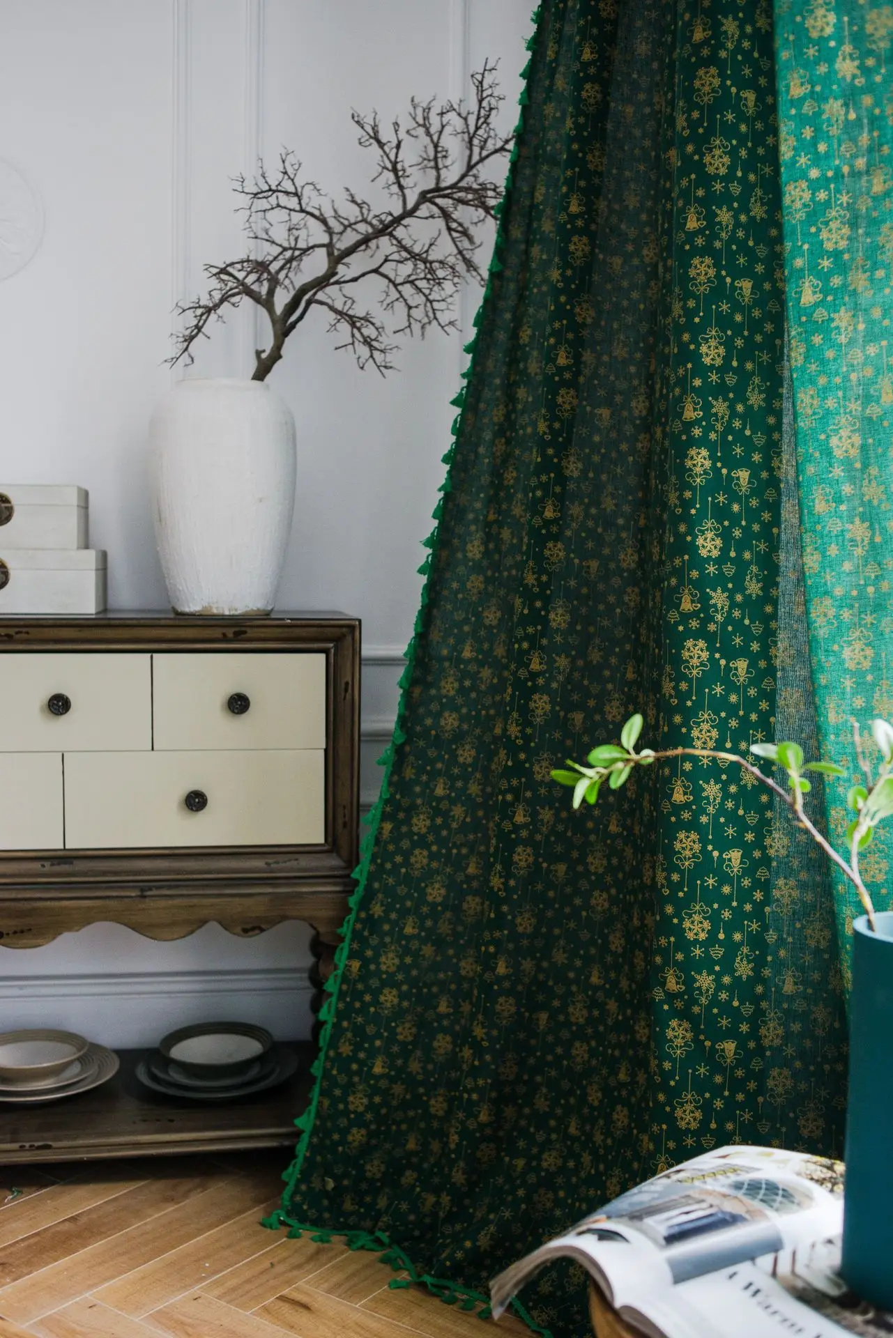 Рождественские украшения, занавески на заказ, зеленые хлопковые льн...