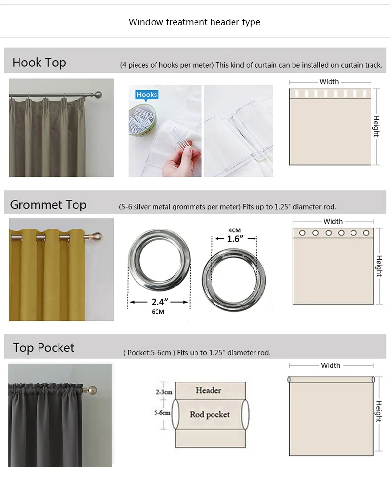 Orocessing methodstab top,eyelets,rings,hooks,pleated taps,rod pocket
