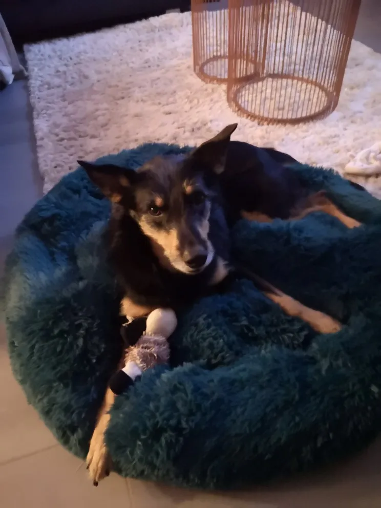 Отличная кровать для собаки! Очень удобный, такой же цвет, как на картинке. Пришел в течение 6 дней!