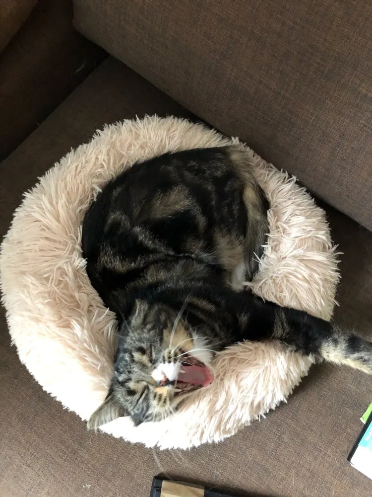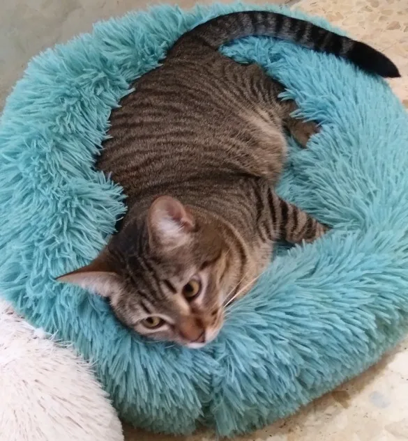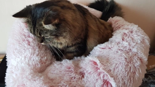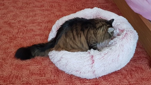 Всё хорошо , но кот не ложится , не знаю как приучить