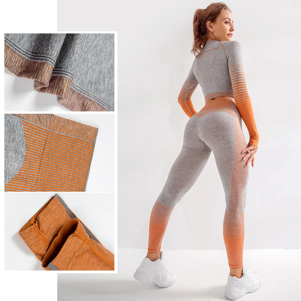 Бесшовный спортивный комплект для фитнеса, Женский комплект для йоги, спортивная одежда, дышащий спортивный костюм, женский комплект из 2 предметов, тренировочная одежда для женщин, спортивный костюм