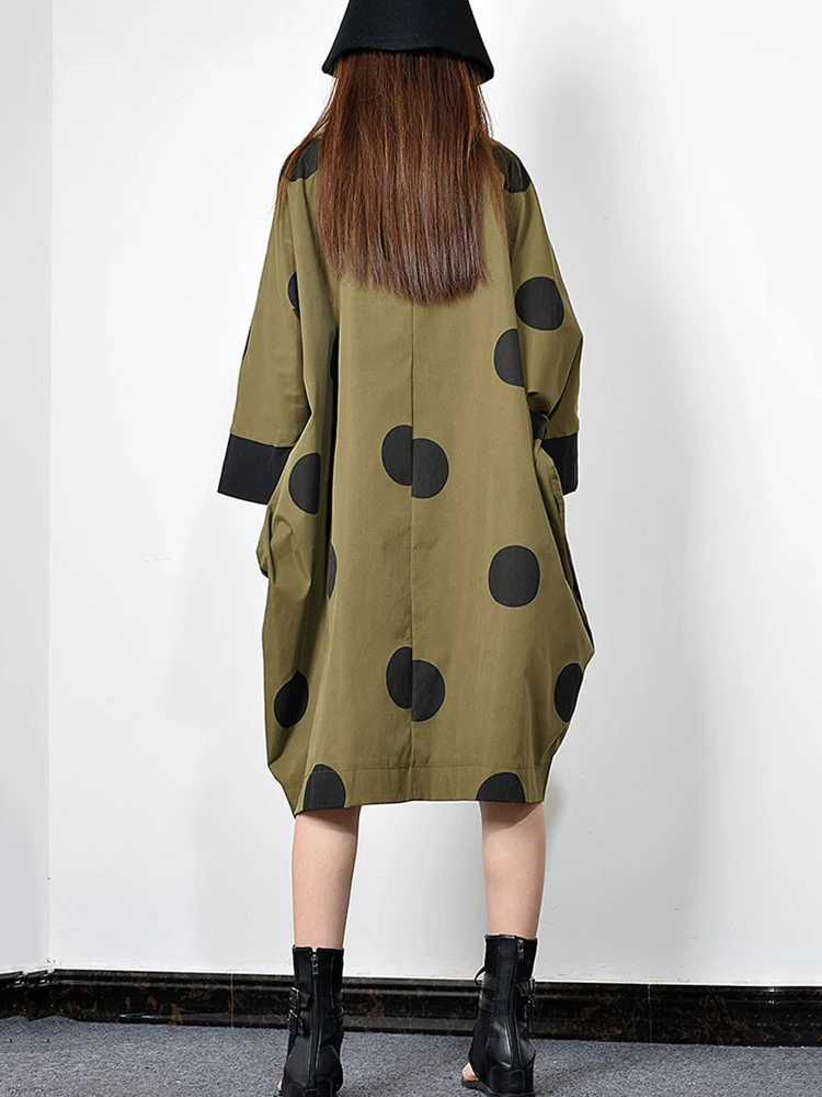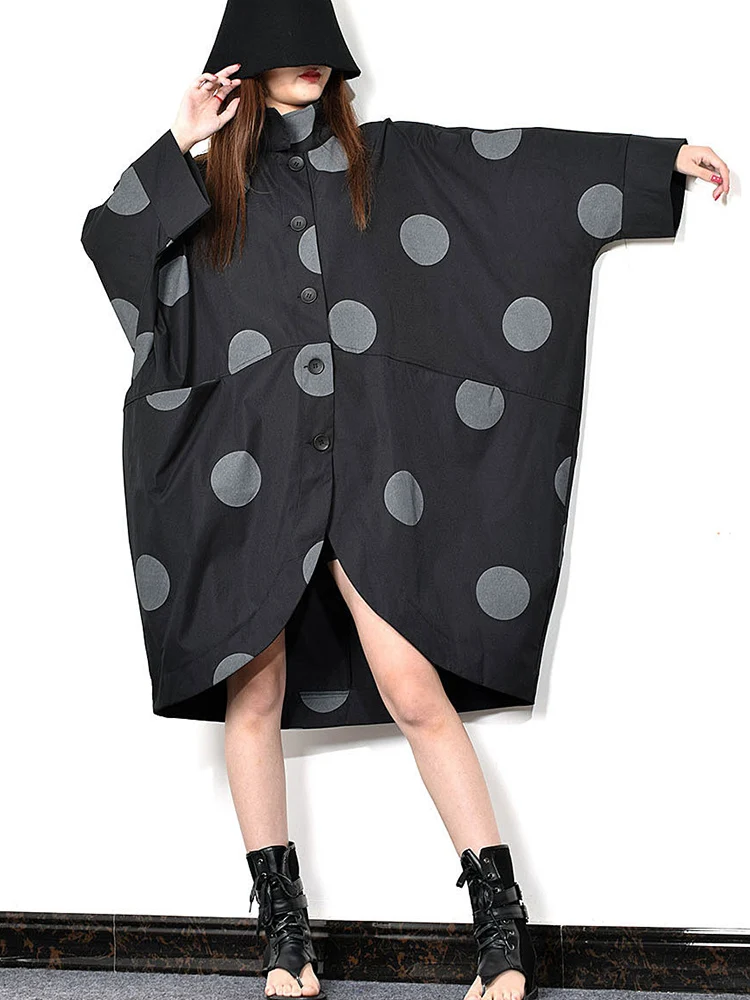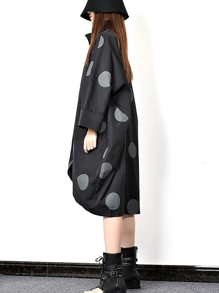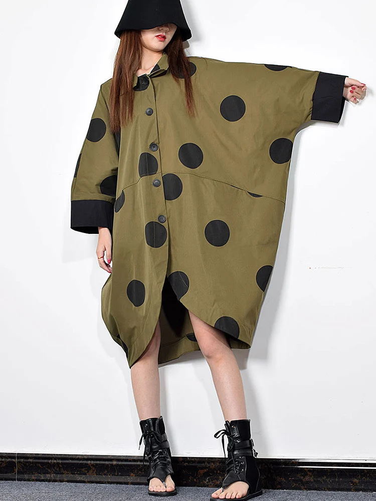 Женский однобортный Тренч в горошек, с отложным воротником и рукавом летучая мышь