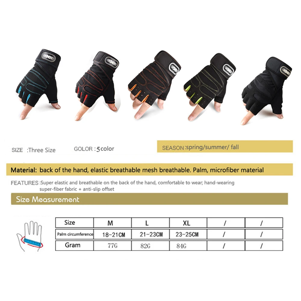 Перчатки спортивные с открытыми пальцами, дышащие, Нескользящие, для поддержки запястья, бодибилдинга и тренировок