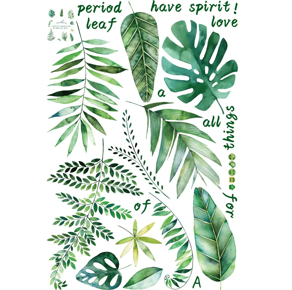 Настенные Стикеры с зелеными растениями, домашние настенные Стикеры с тропическим лесом и бамбуковыми листьями, Струйные настенные Стикеры, внутренние обои для детской комнаты