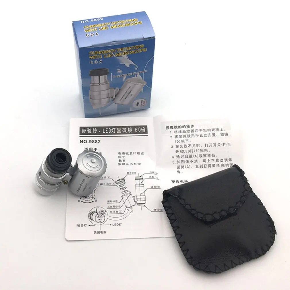 Портативный микроскоп 60x карманный мини-микроскоп Лупа Ювелирная Лупа стеклянная линза светодиодный светильник детектор денег лампа тестер Прямая поставка