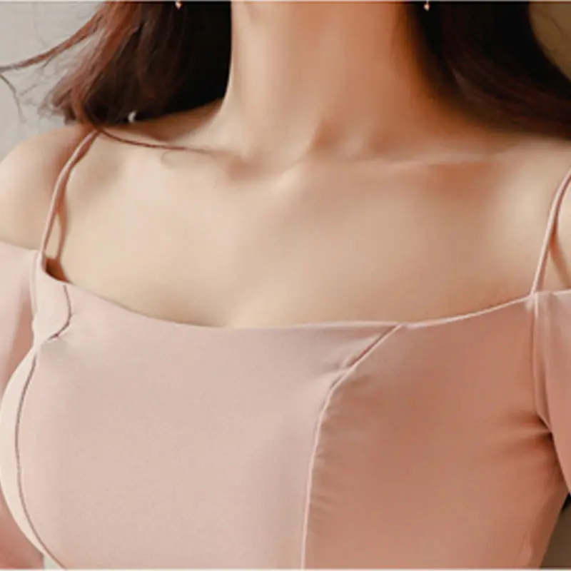 Футболка женская с открытыми плечами, Модный повседневный топ из смешанного хлопка, пикантная короткая рубашка с длинным рукавом, лето-осень