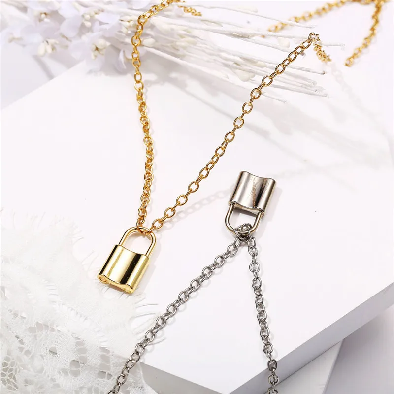 Панковская цепочка золотогосеребряного цвета с замком, ожерелье для женщин и мужчин, кулон с замком, 2019 эффектное готическое модное украшение