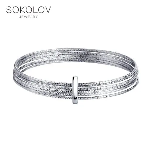 Браслет жёсткий SOKOLOV из серебра с алмазной гранью, Серебро, 925, Браслеты на руку, Оригинальная продукция