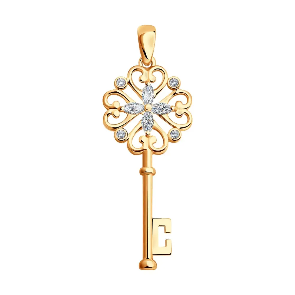 Подвеска «Ключ» SOKOLOV из золочёного серебра с фианитами